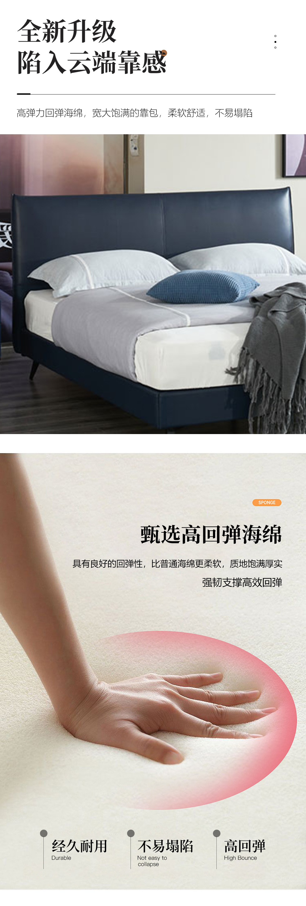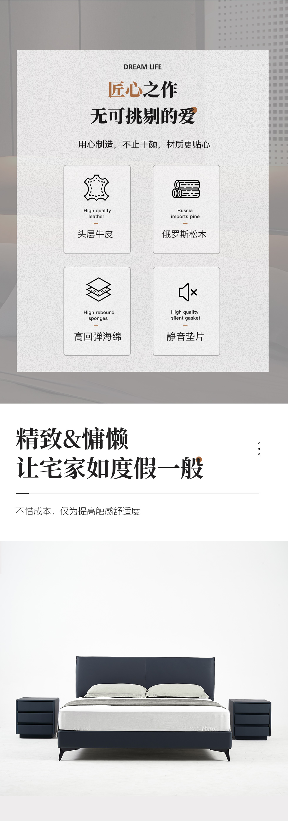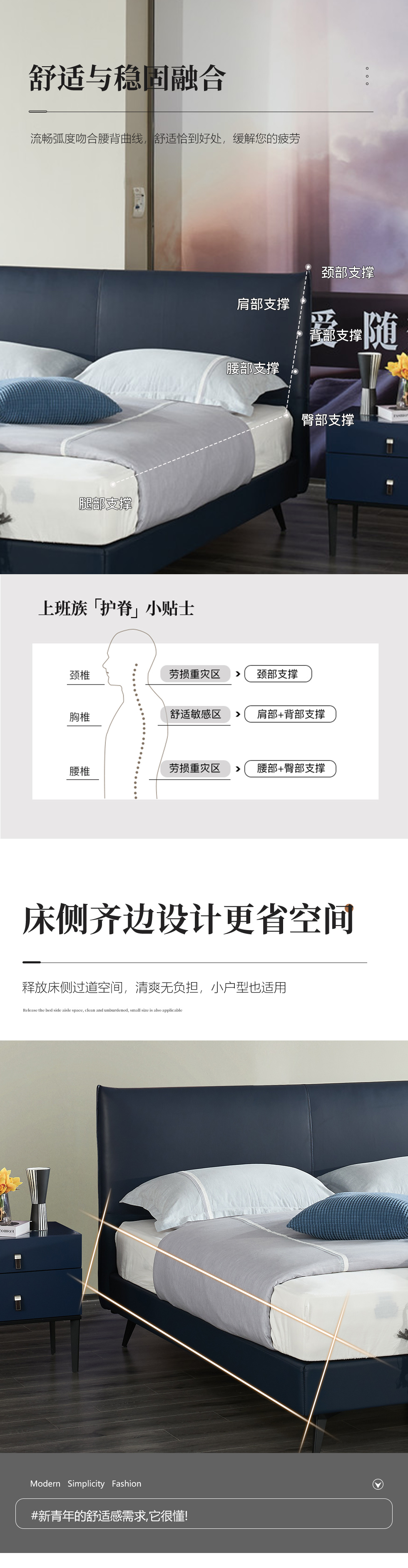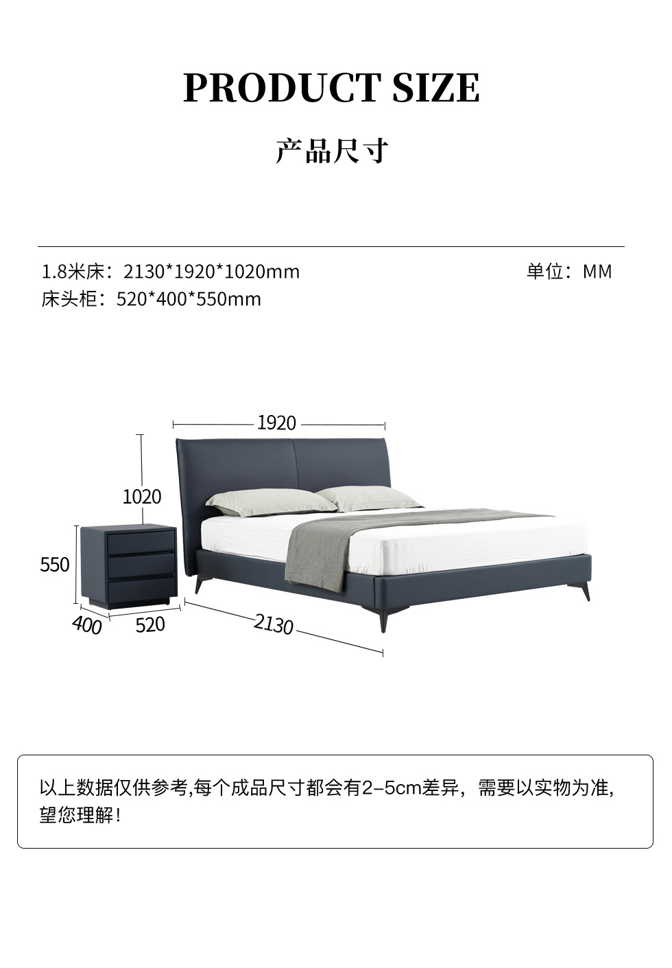 希奥 极简 俄罗斯进口松木+接触面真皮+PVC+多层实木板+实木排骨架 蓝色 1.8米皮床