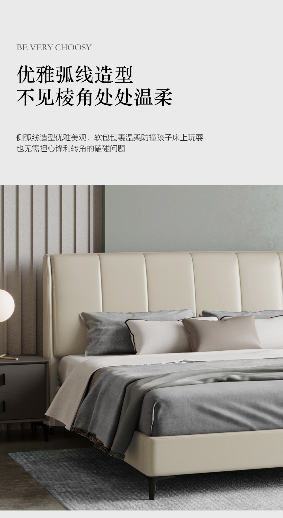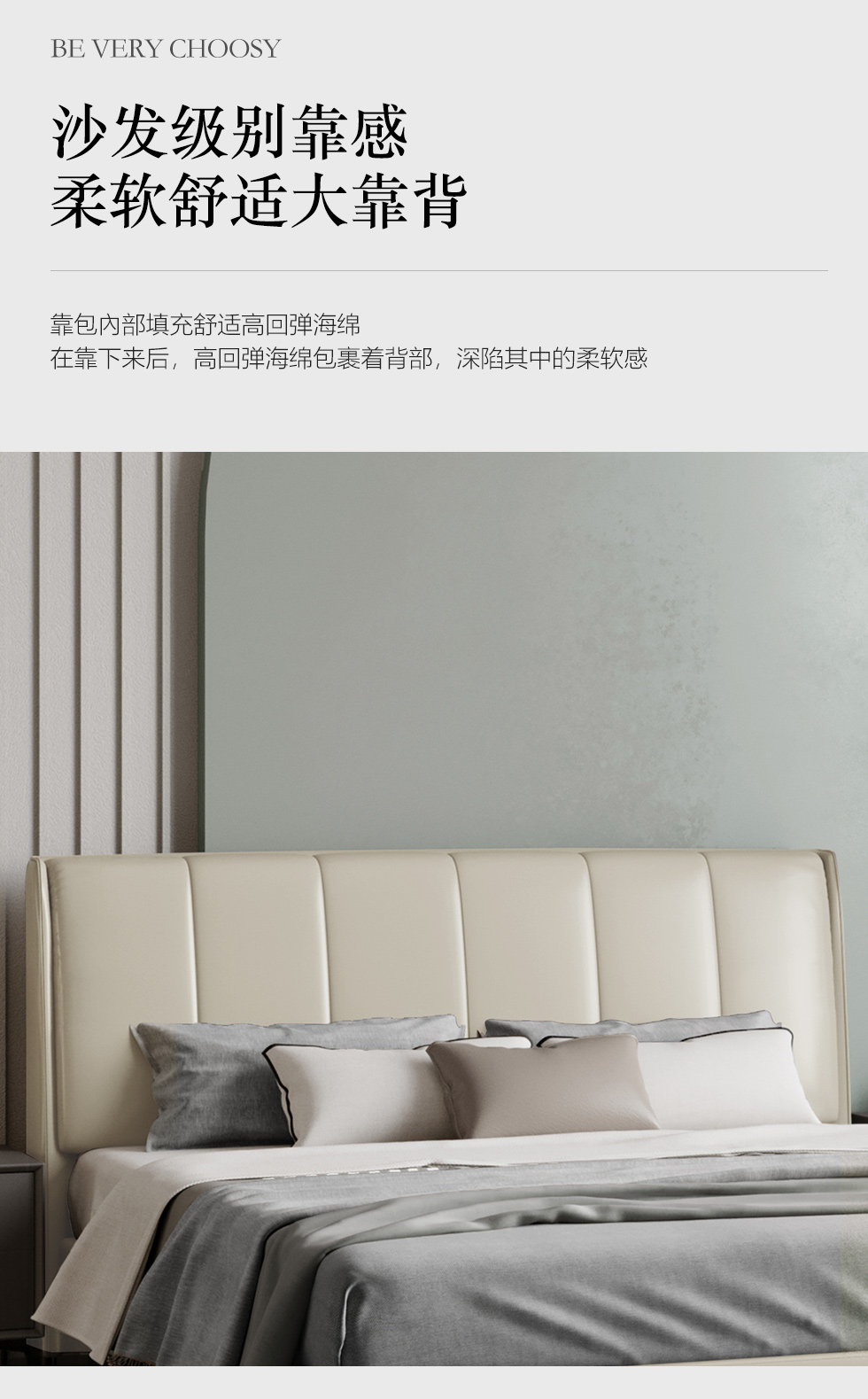 A系优选 现代简约 全实木框架 接触面头层牛皮 高密度海绵 1.8米床(价格不含高箱,如需定制请咨询客服)¥2819
