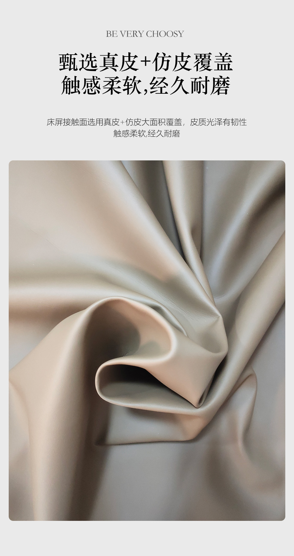 B系优选 极简 接触面真皮+仿皮+木框架高密 度回弹海绵+静音防滑实木十分排骨条+五金脚+静音条 卡其色 1.5米 真皮软床(价格不含高箱,如需定制请咨询客服)