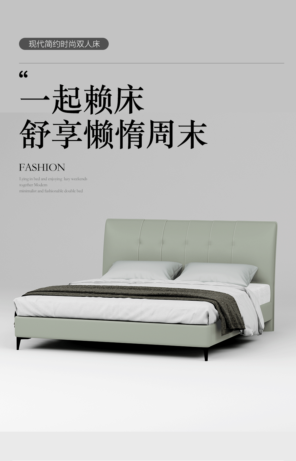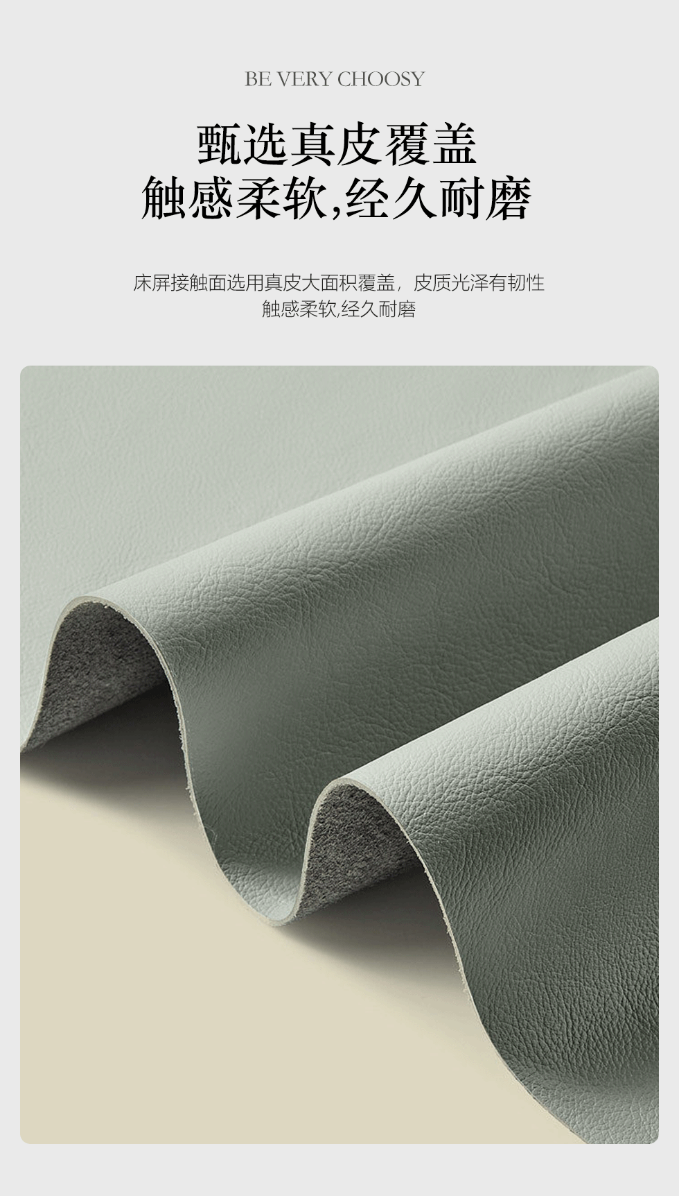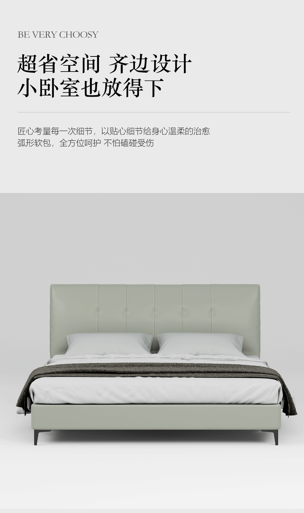 非凡工艺 现代简约 接触面真皮+仿皮+木框架高密 度回弹海绵+静音防滑实木十分排骨条+五金脚+静音条 浅绿色 1.8米 真皮软床 |