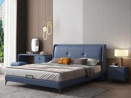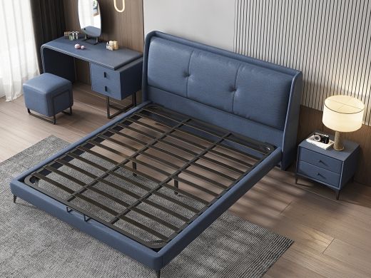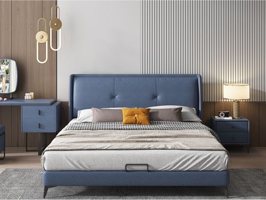 A系优选 现代简约 科技布+公仔包+普通贴纸排骨架+实木多层板内框 宝蓝色 1.8米齐边床+2床头柜(价格不含高箱,如需定制请咨询客服)