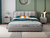 A系优选 现代简约 仿真皮+海棉靠包+普通贴纸排骨架+板木结构 浅灰色 1.8M齐边床+2床头柜(价格不含高箱,如需定制请咨询客服)