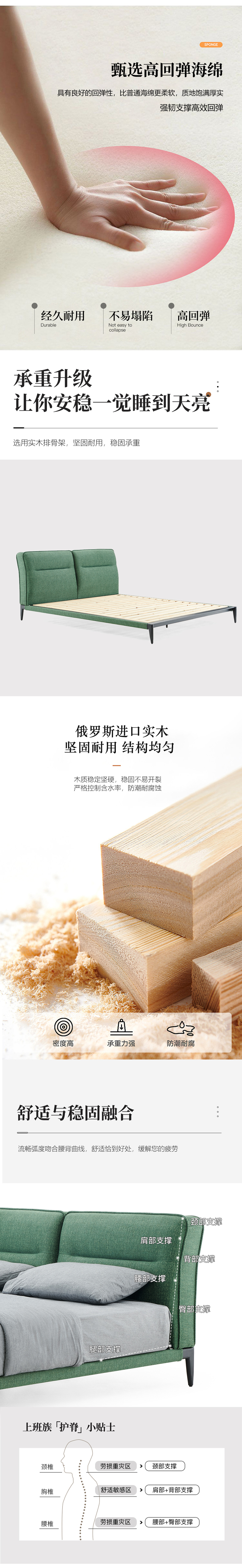 贝斯solo 设计师 网红 极简 布艺+俄罗斯进口落叶松+优质高回弹海绵靠包+钢木排骨架 斯宾塞床 1.8米床¥4587