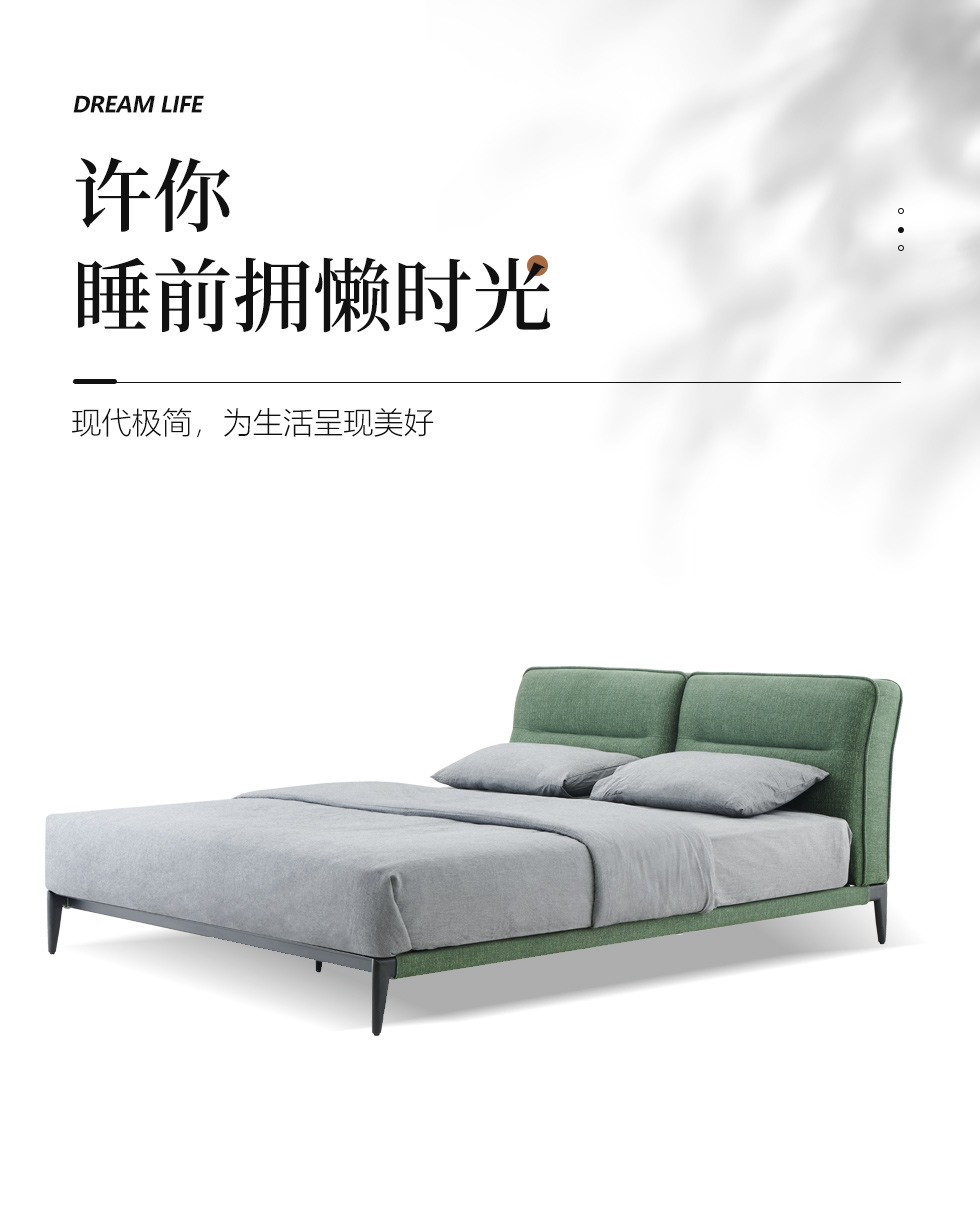 贝斯solo 设计师 网红 极简 布艺 俄罗斯进口落叶松 优质高回弹海绵靠包 钢木排骨架 Minotti柯蒂斯床 1.8米床