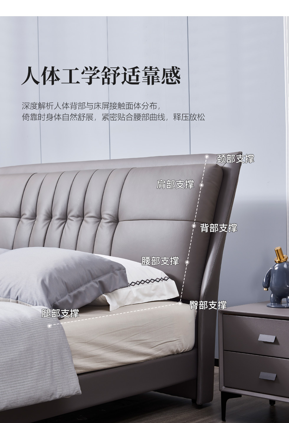 A系优选 现代简约 生态科技皮+实木框架+钢木排骨架+碳素钢金属脚 1.8米软床+2个床头柜(价格不含高箱,如需定制请咨询客服)