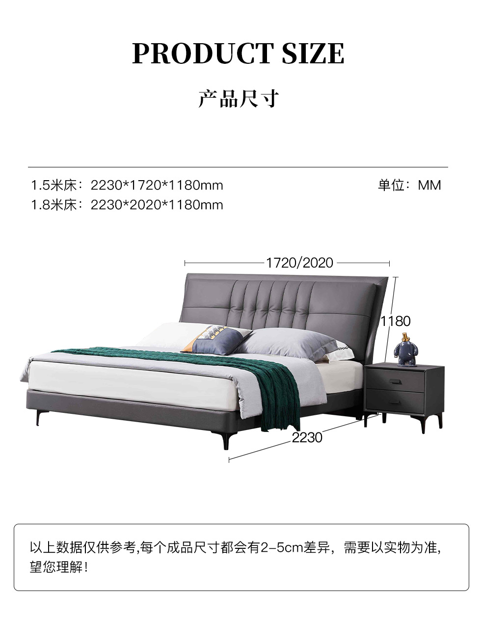B系优选 现代简约 接触面头层牛皮+仿皮+高回弹海绵+实木框架+10分钢木排骨架+白蜡木床边 1.8米床B系优选 现代简约 布艺+高密度海绵+实木框架+钢木排骨架+碳素钢金属脚 1.8米软床(价格不含高箱,如需定制请咨询客服)