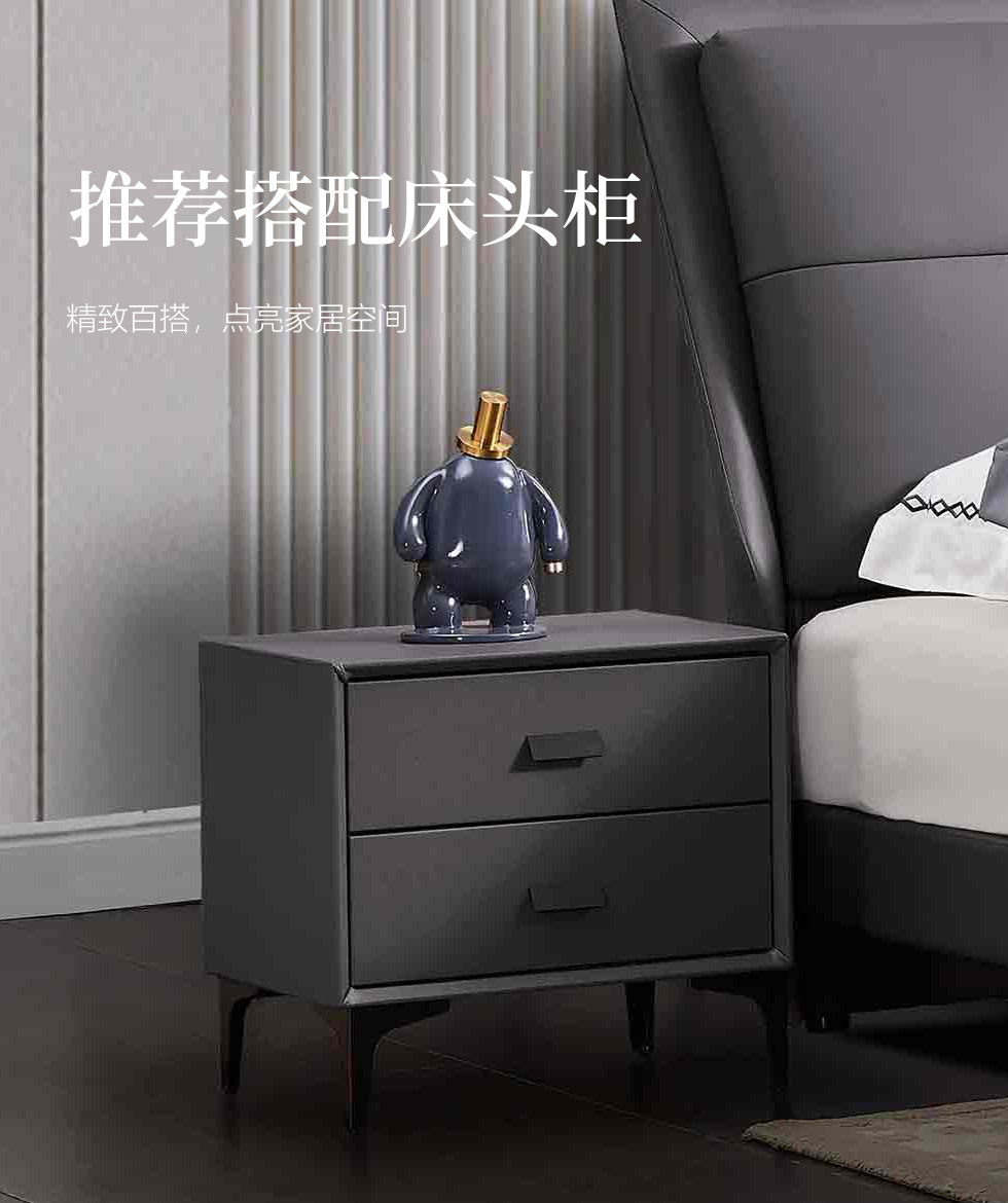 B系优选 现代简约 接触面真皮+高密度海绵+实木框架+钢木排骨架+碳素钢金属脚 1.8米软床+2个床头柜(价格不含高箱,如需定制请咨询客服)