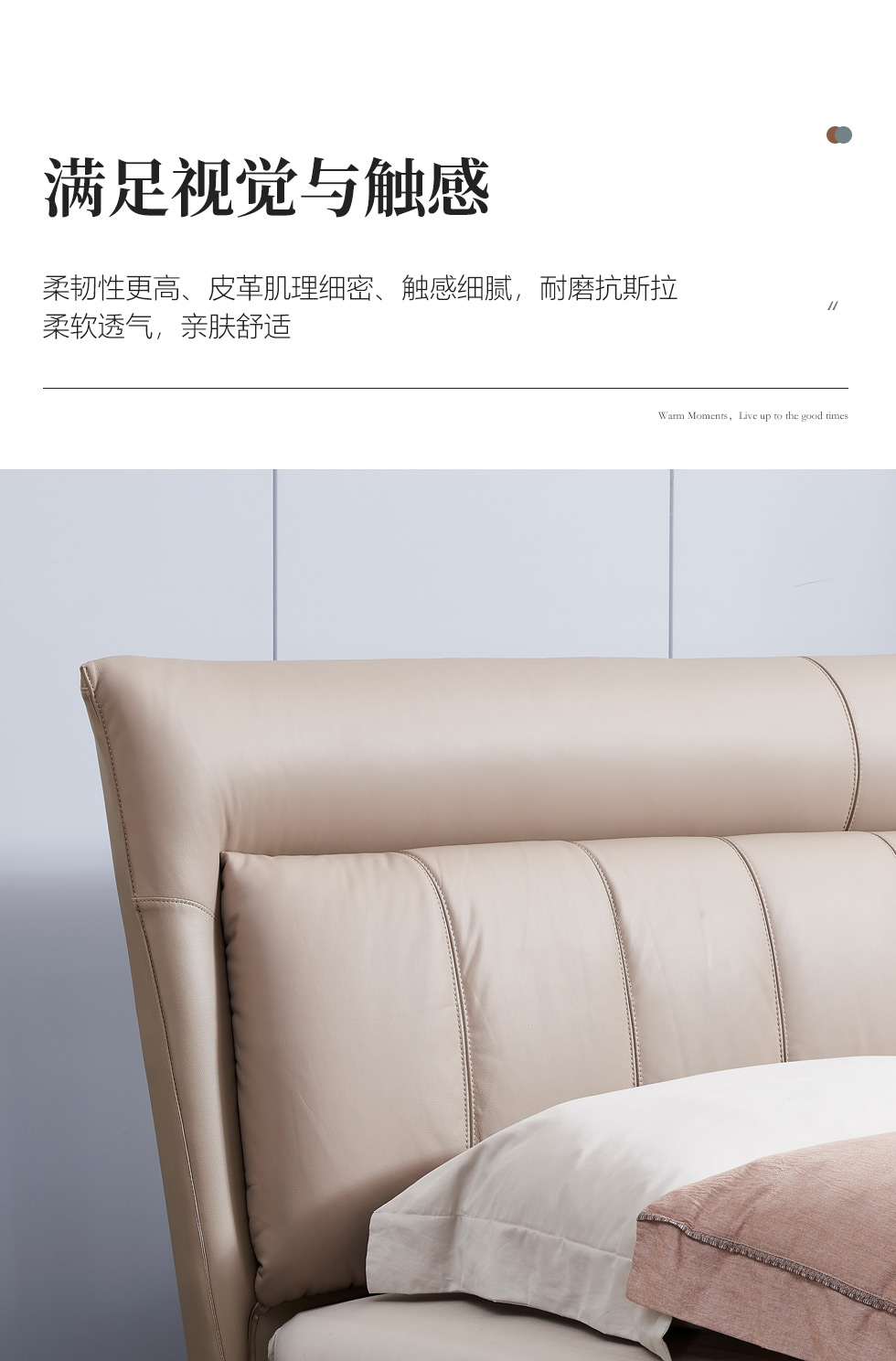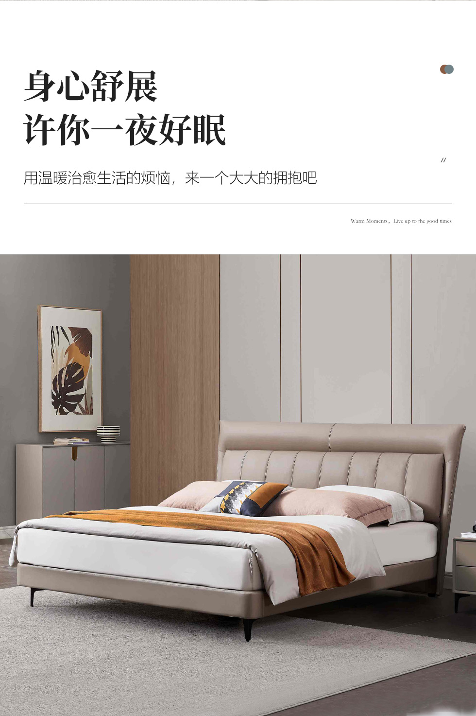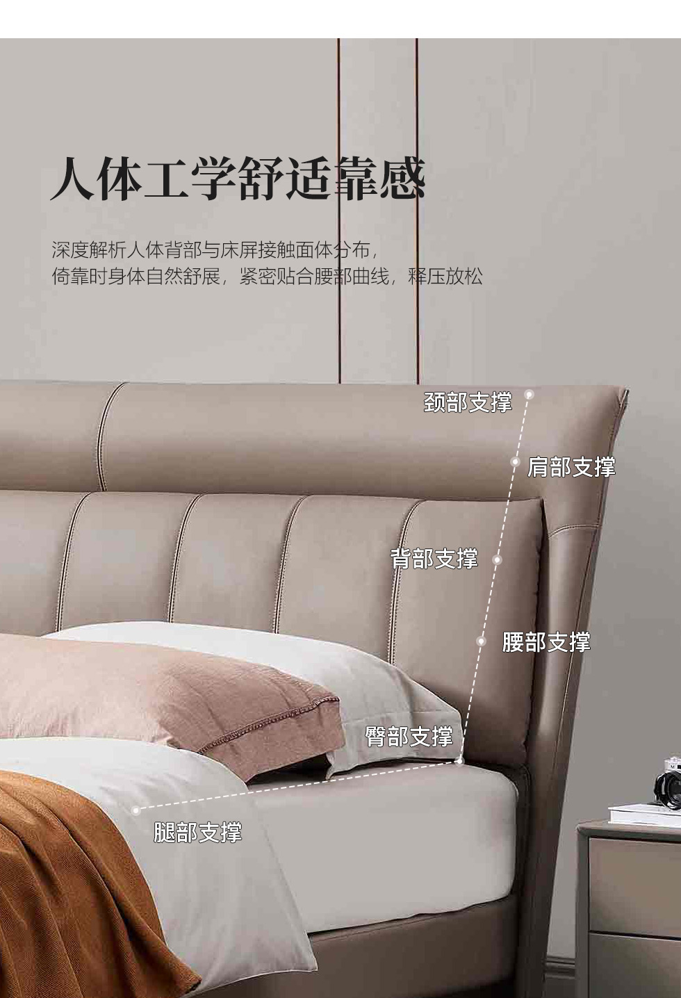 B系优选 现代简约 接触面头层牛皮+仿皮+高回弹海绵+实木框架+10分钢木排骨架+白蜡木床边 1.8米床¥3728