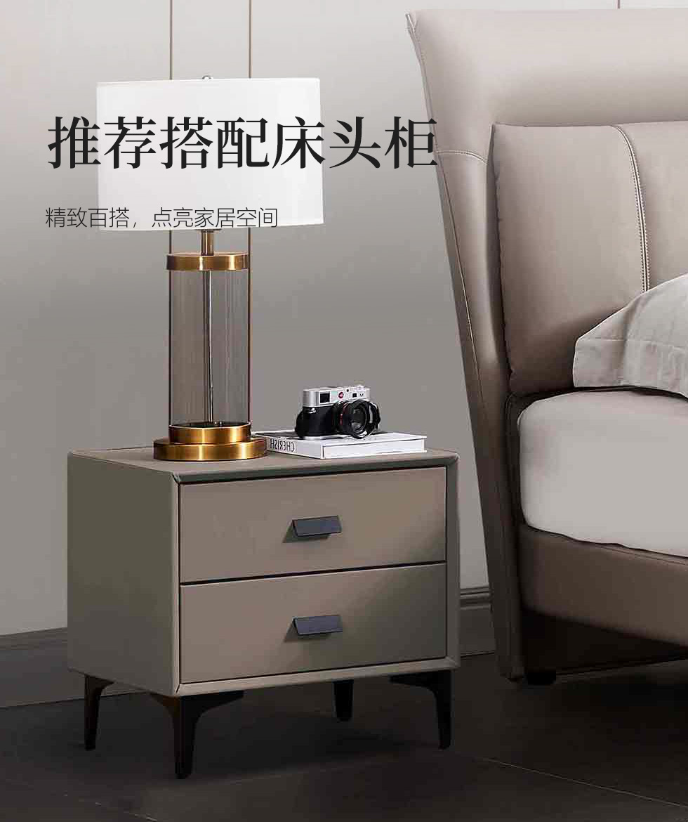 B系优选 现代简约 接触面真皮+高密度海绵+实木框架+钢木排骨架+碳素钢金属脚 1.8米软床+2个床头柜(价格不含高箱,如需定制请咨询客服)