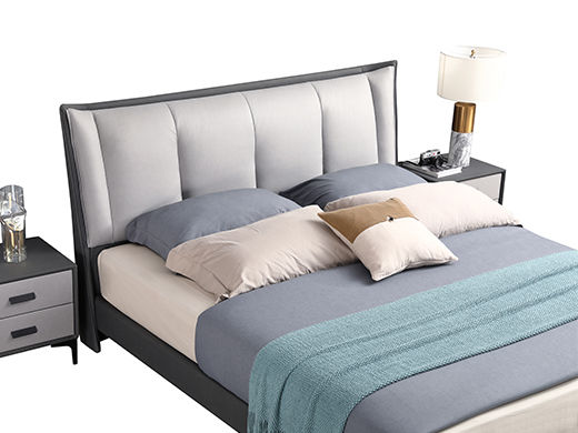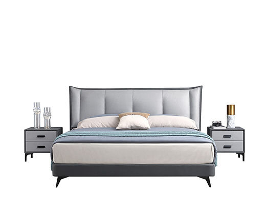 B系优选 现代简约 接触面真皮+高密度海绵+实木框架+钢木排骨架+碳素钢金属脚 1.8米软床+2个床头柜(价格不含高箱,如需定制请咨询客服)