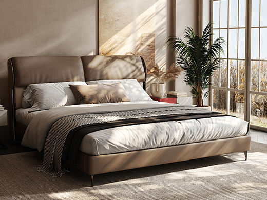 Minttu明途 极简 实木框架+海绵+生态真皮+仿皮+五金脚 皮床 1.8米¥5121