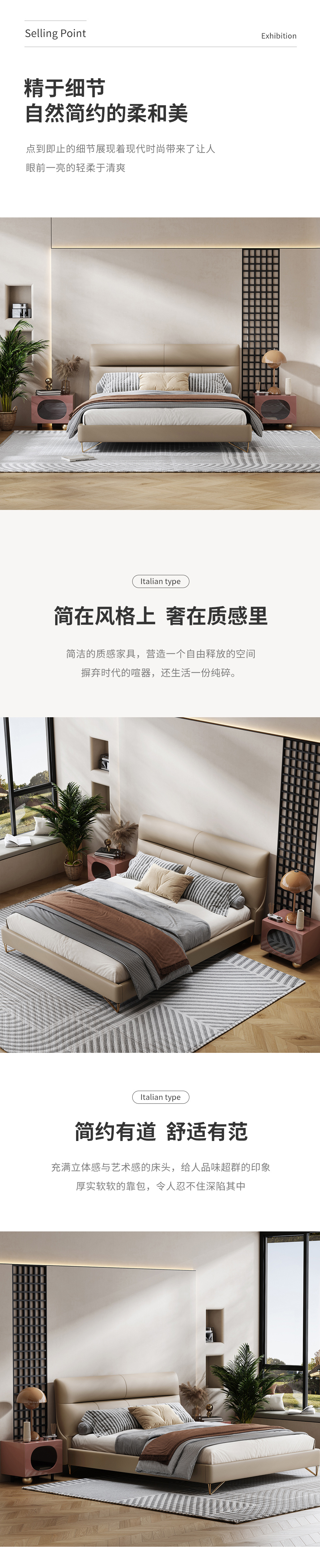 Minttu明途 极简 实木框架+海绵+生态真皮+仿皮+五金脚 皮床 1.8米| 商品详情 | 规格参数 | 评价(0) | 购买咨询() | 产品实拍图 | 服务标准 |