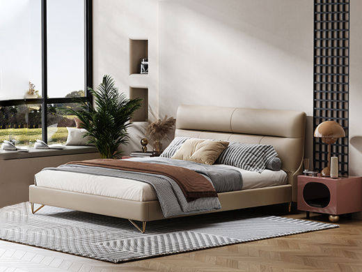 Minttu明途 极简 实木框架+海绵+生态真皮+仿皮+五金脚 皮床 1.8米¥5112