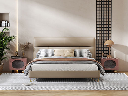 Minttu明途 极简 实木框架+海绵+生态真皮+仿皮+五金脚 皮床 1.8米+两个床头柜