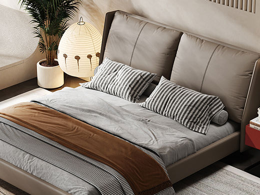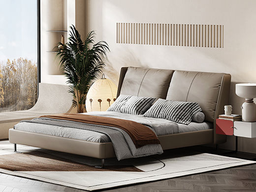 Minttu明途 极简 实木框架+海绵+靠包羽绒+生态真皮+仿皮+五金脚 皮床 1.5米