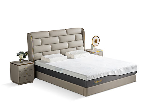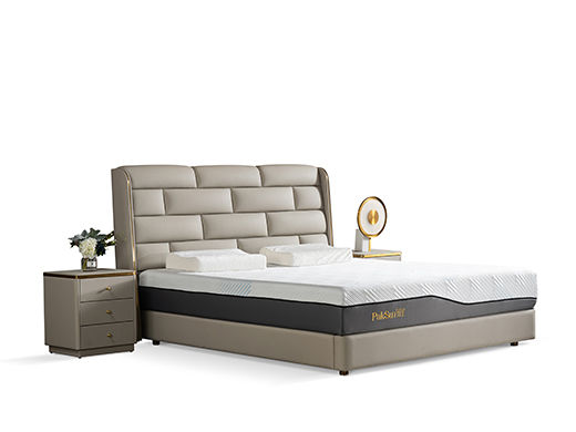 柏思戈 轻奢 纳米环保科技皮 实木结构 俄罗斯进口落叶松 浅灰色 1.8米皮床¥8509