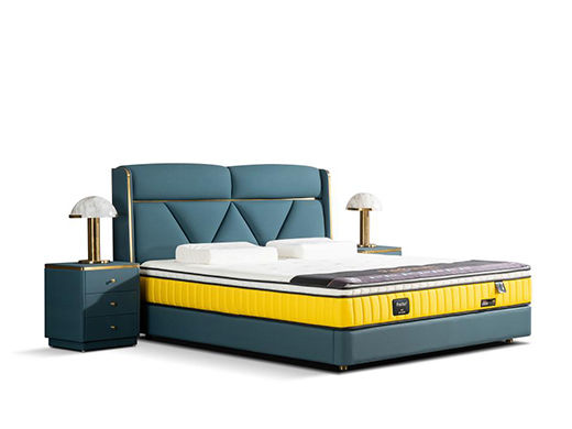 柏思戈 轻奢 纳米环保科技皮 实木结构 俄罗斯进口落叶松 蓝色 1.8米皮床