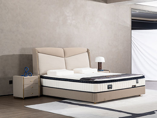 柏思戈 轻奢 纳米环保科技皮 实木结构 俄罗斯进口落叶松 米黄色 1.8米皮床¥7507