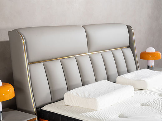 柏思戈 轻奢 纳米环保科技皮 实木结构 俄罗斯进口落叶松 浅灰色 1.8米皮床¥8509