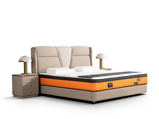 柏思戈 轻奢 纳米环保科技皮 实木结构 俄罗斯进口落叶松 米黄色 1.8米皮床¥7507