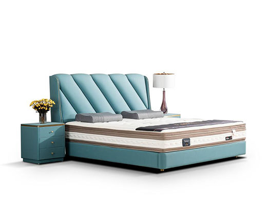 柏思戈 轻奢 纳米环保科技皮 实木结构 俄罗斯进口落叶松 蓝色 1.8米皮床¥6559