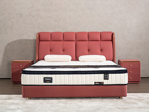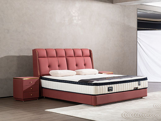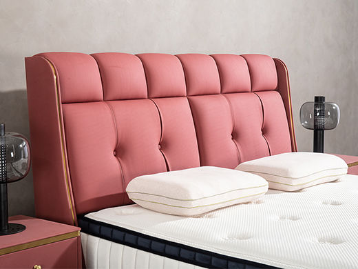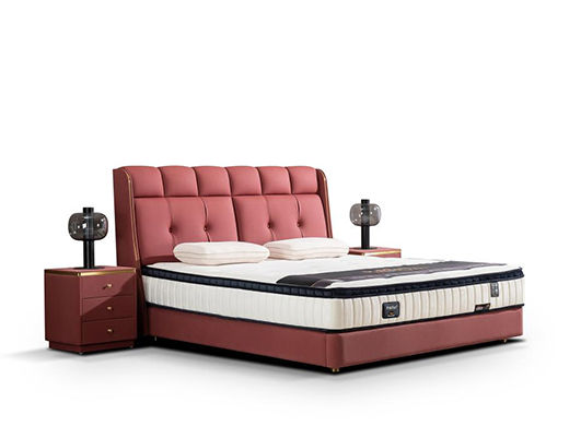 柏思戈 轻奢 纳米环保科技皮 实木结构 俄罗斯进口落叶松 紫红色 1.8米皮床