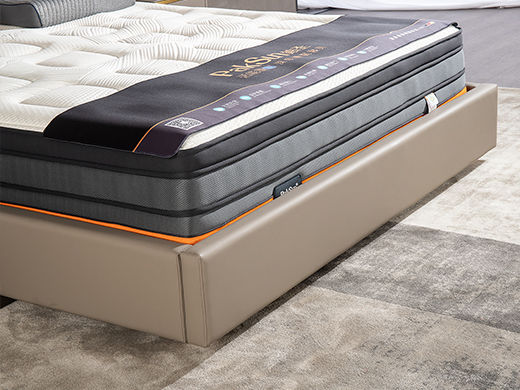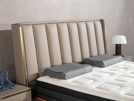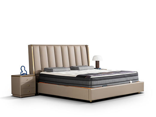 柏思戈 轻奢 纳米环保科技皮 实木结构 俄罗斯进口落叶松 米黄色 1.8米皮床