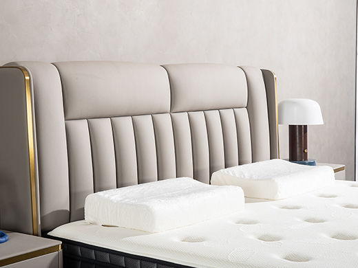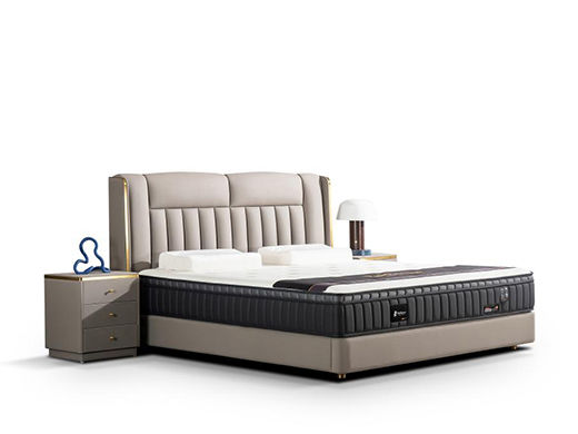 柏思戈 轻奢 纳米环保科技皮 实木结构 俄罗斯进口落叶松 浅灰色 1.8米皮床