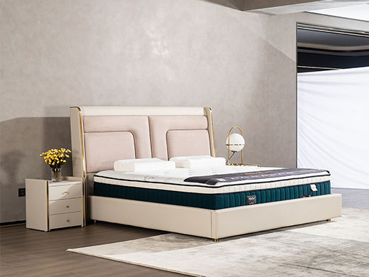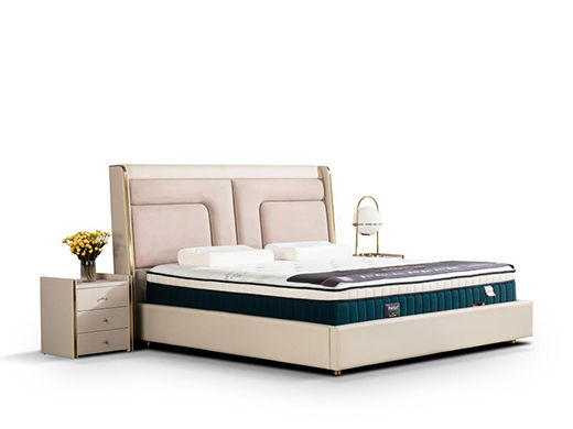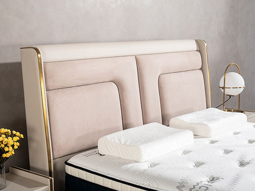 柏思戈 轻奢 纳米环保科技皮 实木结构 俄罗斯进口落叶松 米黄色 1.8米皮床¥7507