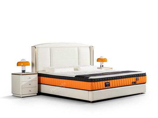 柏思戈 轻奢 纳米环保科技皮 实木结构 俄罗斯进口落叶松 米黄色 1.8米皮床¥7507