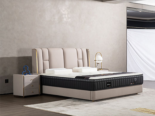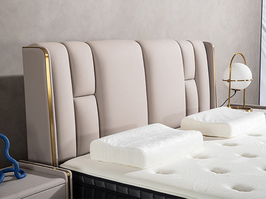 柏思戈 轻奢 纳米环保科技皮 实木结构 俄罗斯进口落叶松 米黄色 1.8米皮床¥7507