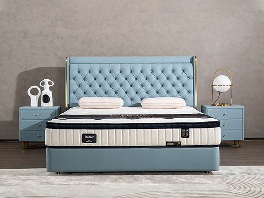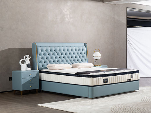 柏思戈 轻奢 纳米环保科技皮 实木结构 俄罗斯进口落叶松 蓝色 1.8米皮床¥7074