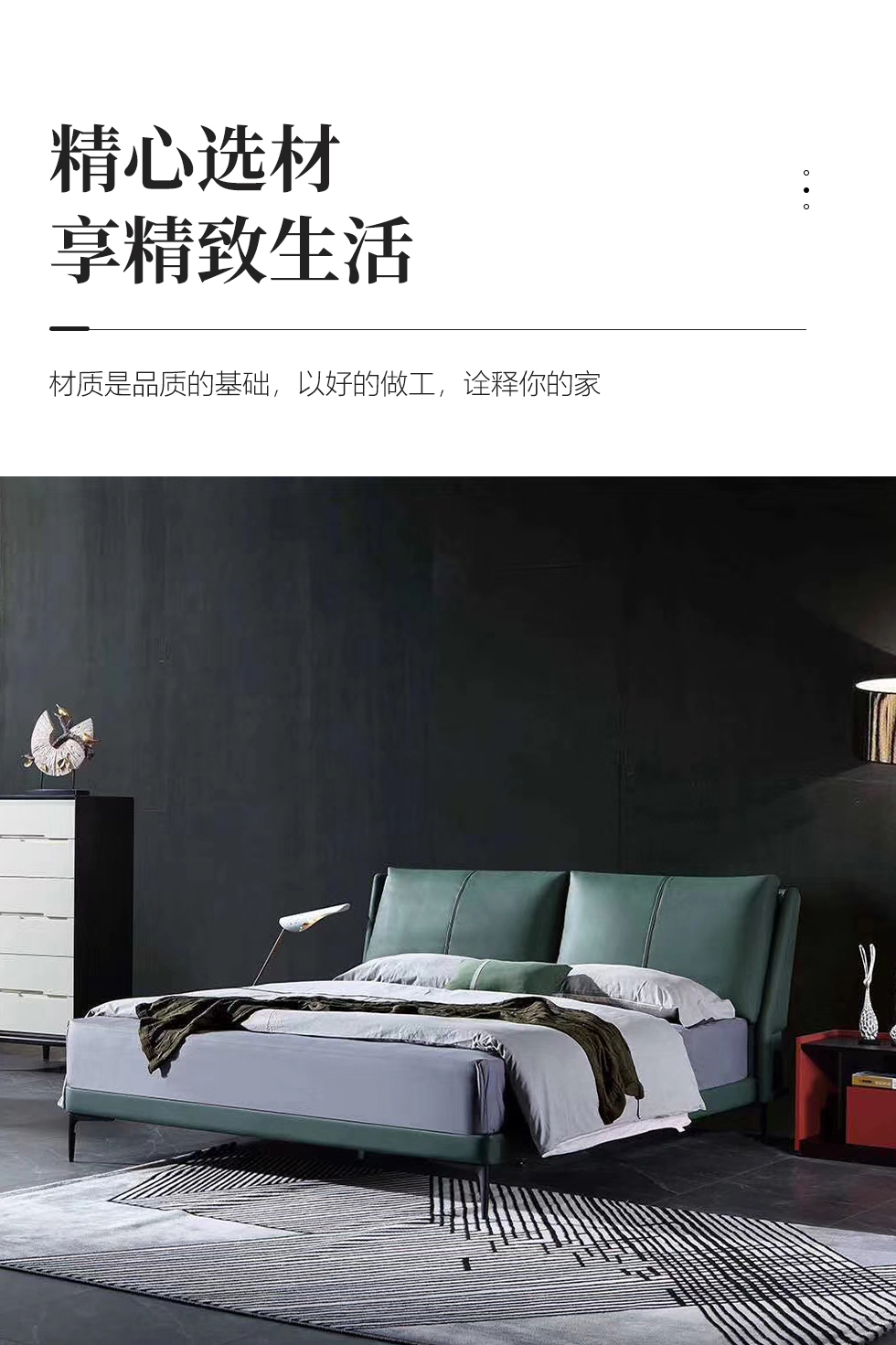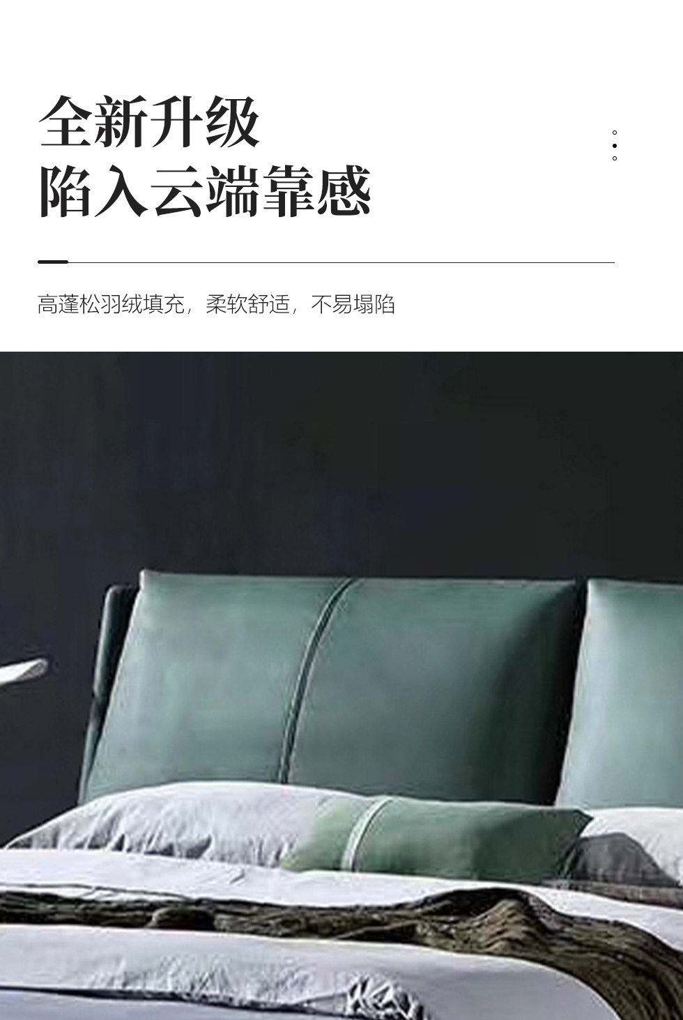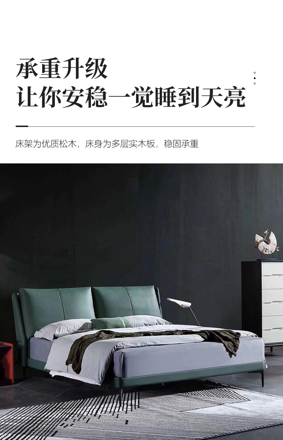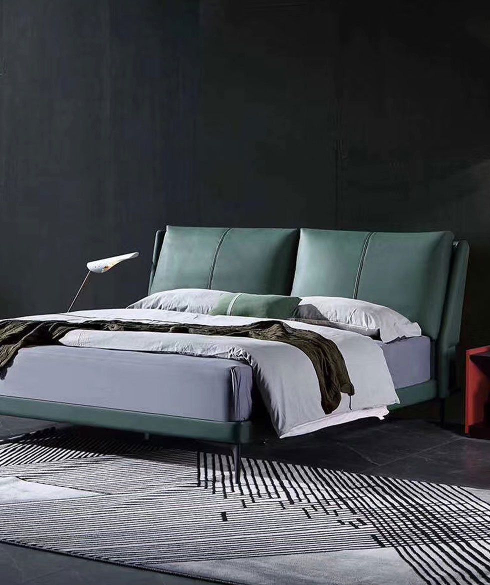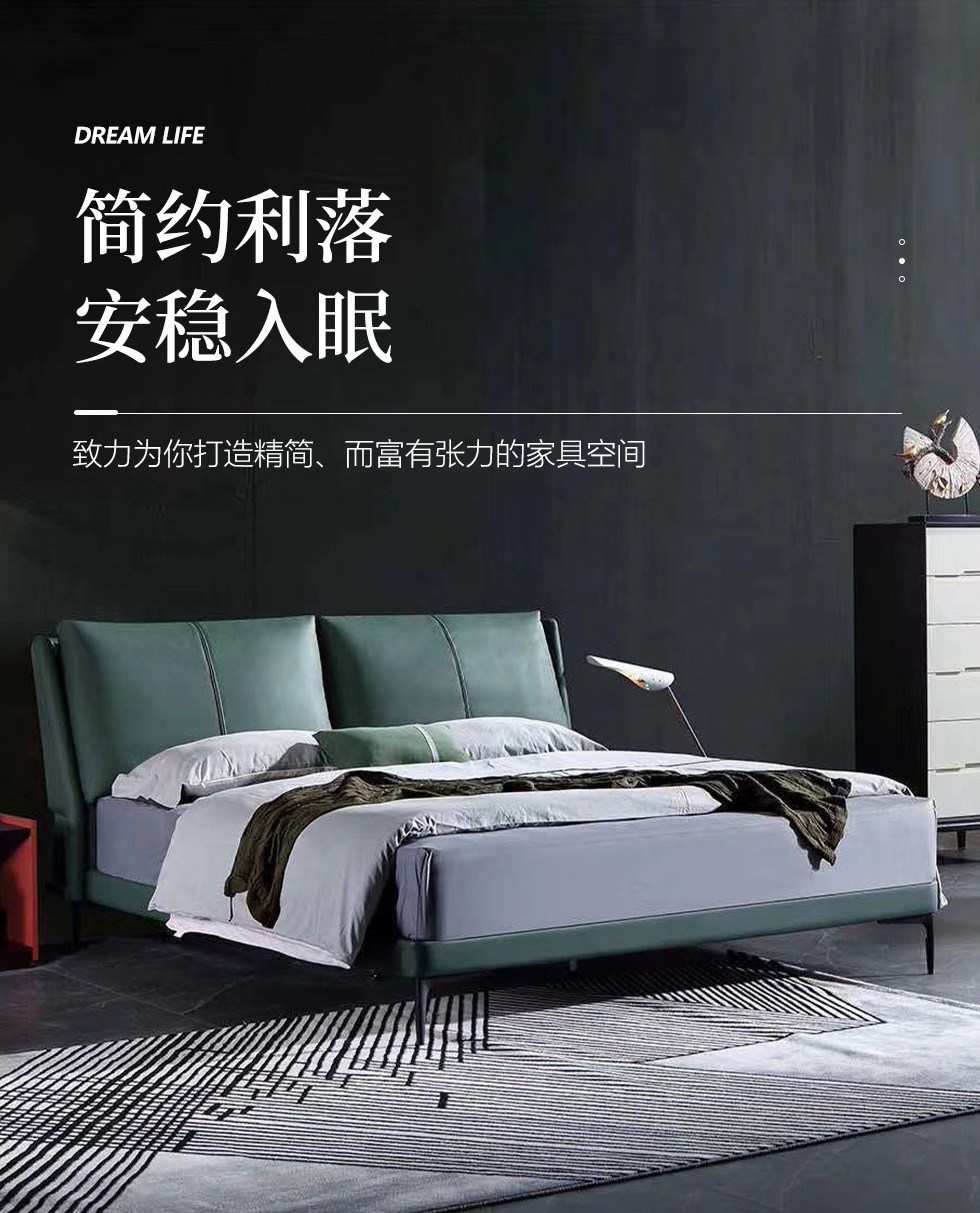 e家优选 极简 接触面靠包真皮 松木 实木多层板 九孔纤维棉 绿色 1.8米皮床¥3849