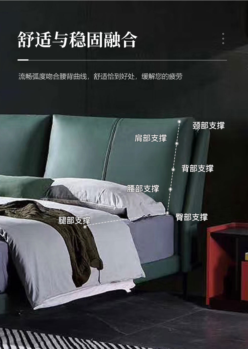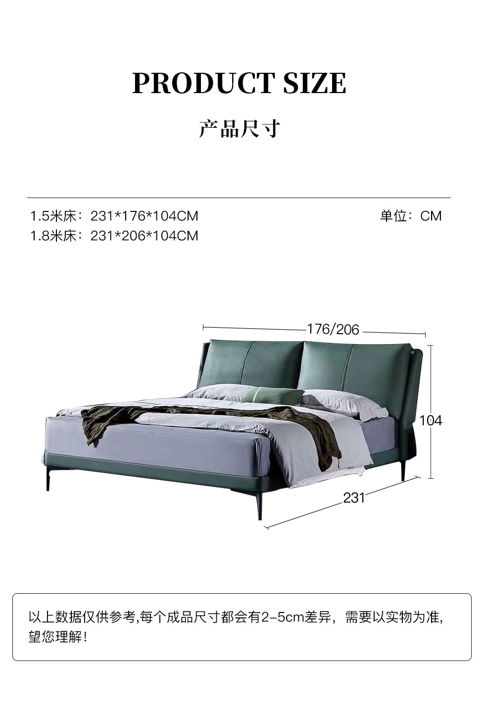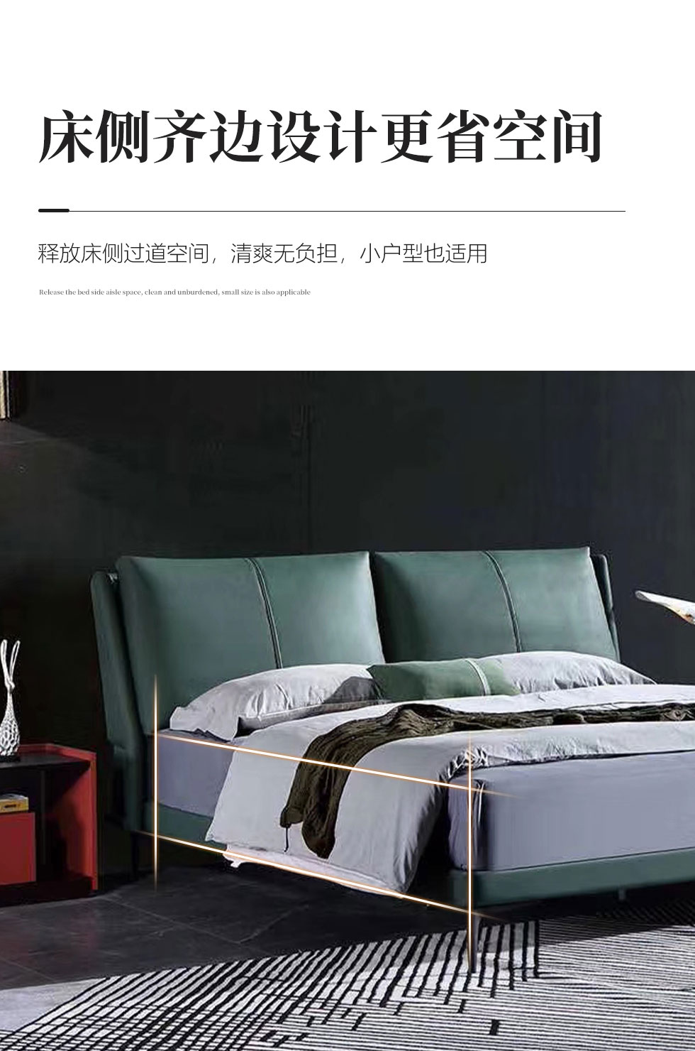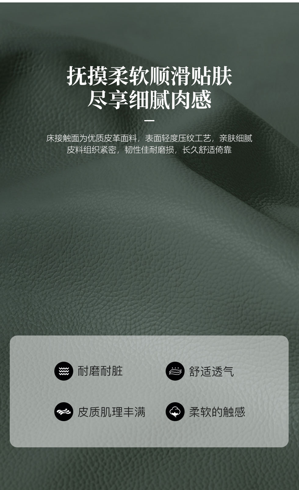 e家优选 极简 接触面靠包真皮 松木 实木多层板 九孔纤维棉 绿色 1.8米皮床¥3849