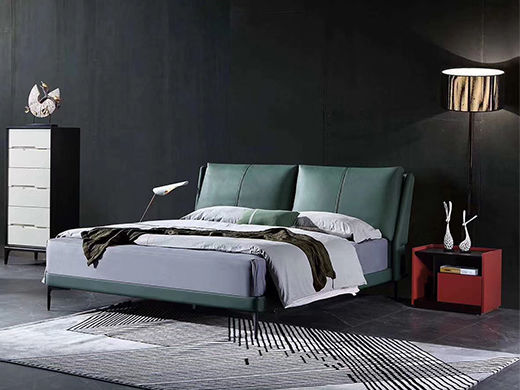 e家优选 极简 接触面靠包真皮(半皮) 松木 实木多层板 九孔纤维棉 绿色 1.8米皮床¥5282