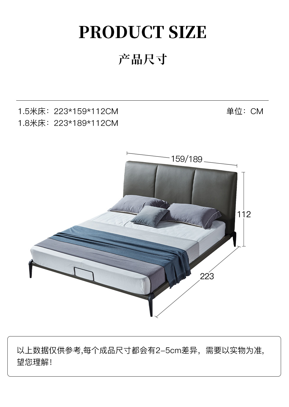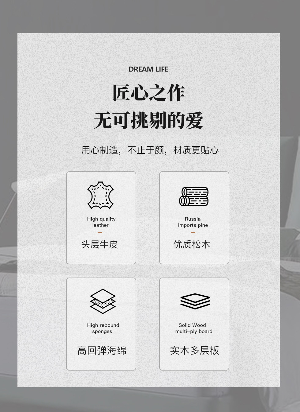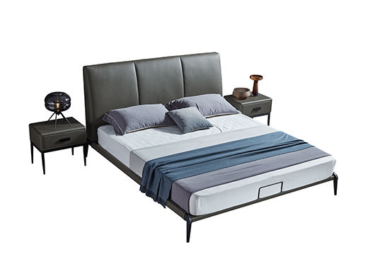 e家优选 极简 接触面头层牛皮 松木 实木多层板 高回弹海绵 灰色 1.8米皮床 |