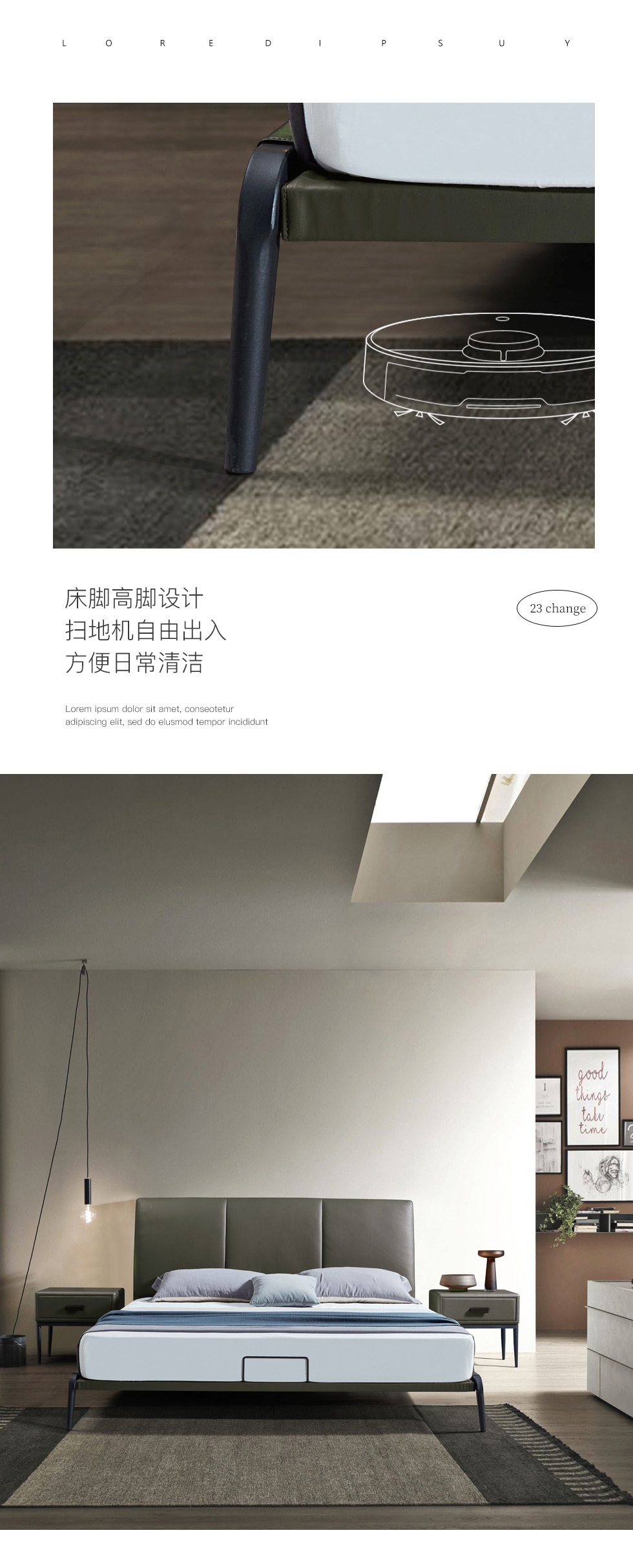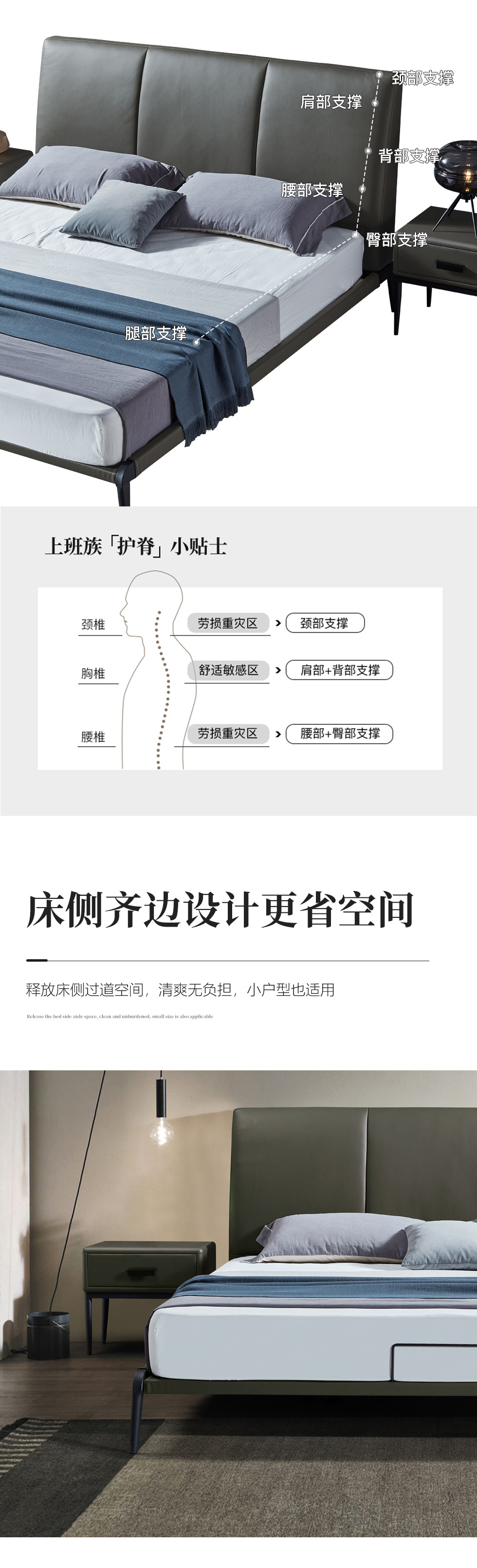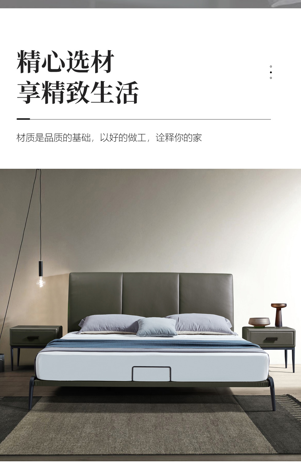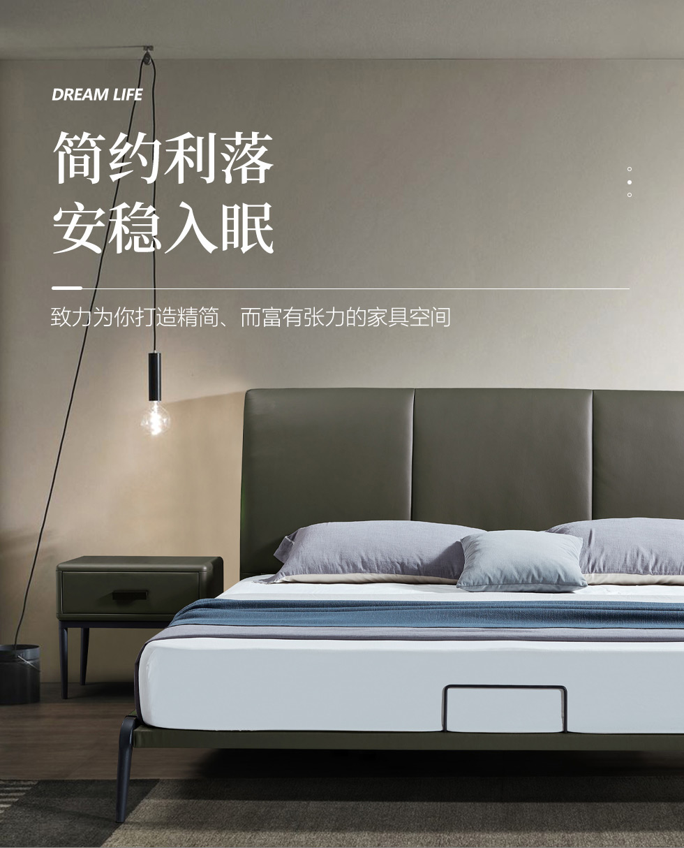 e家优选 极简 接触面靠包真皮 松木 实木多层板 九孔纤维棉 绿色 1.8米皮床¥3849
