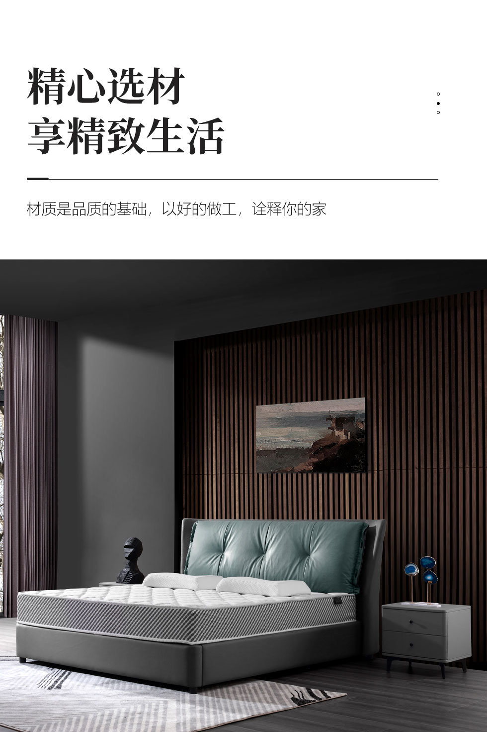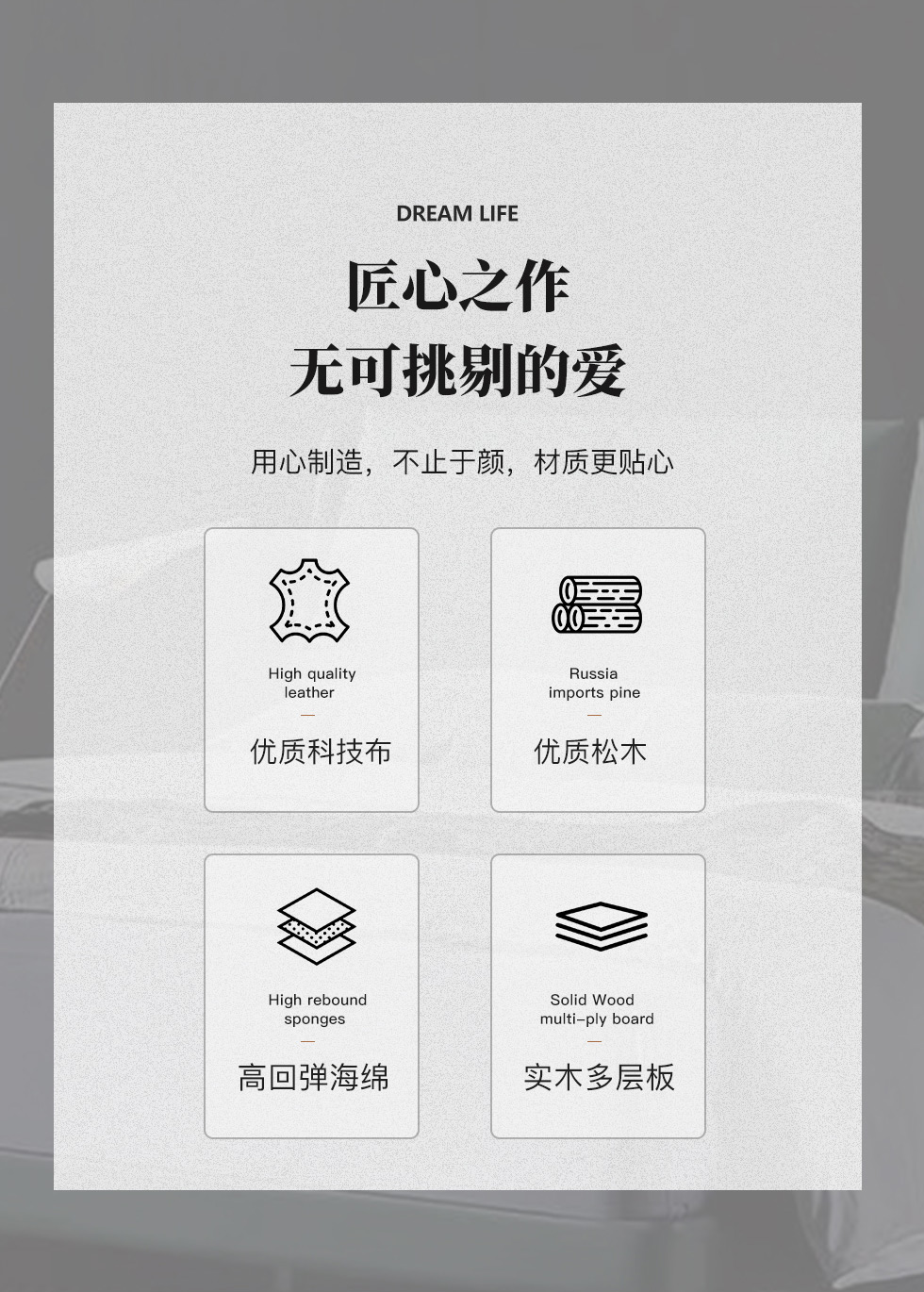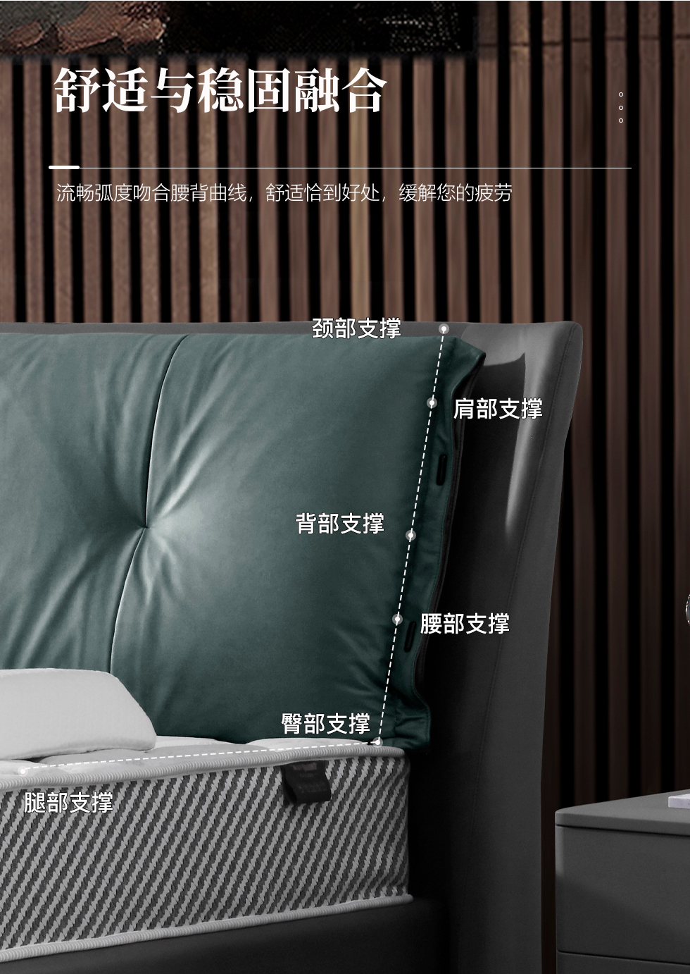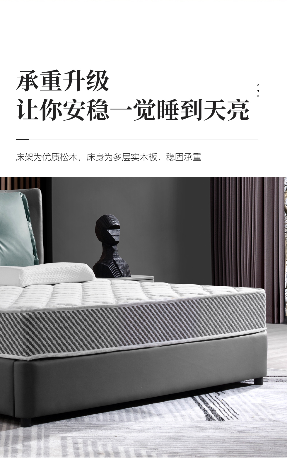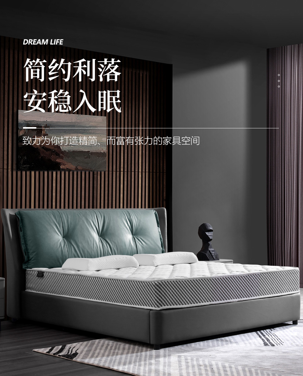 e家优选 现代简约 接触面头层牛皮 松木 实木多层板 九孔纤维棉 咖灰色 1.8米皮床¥3875