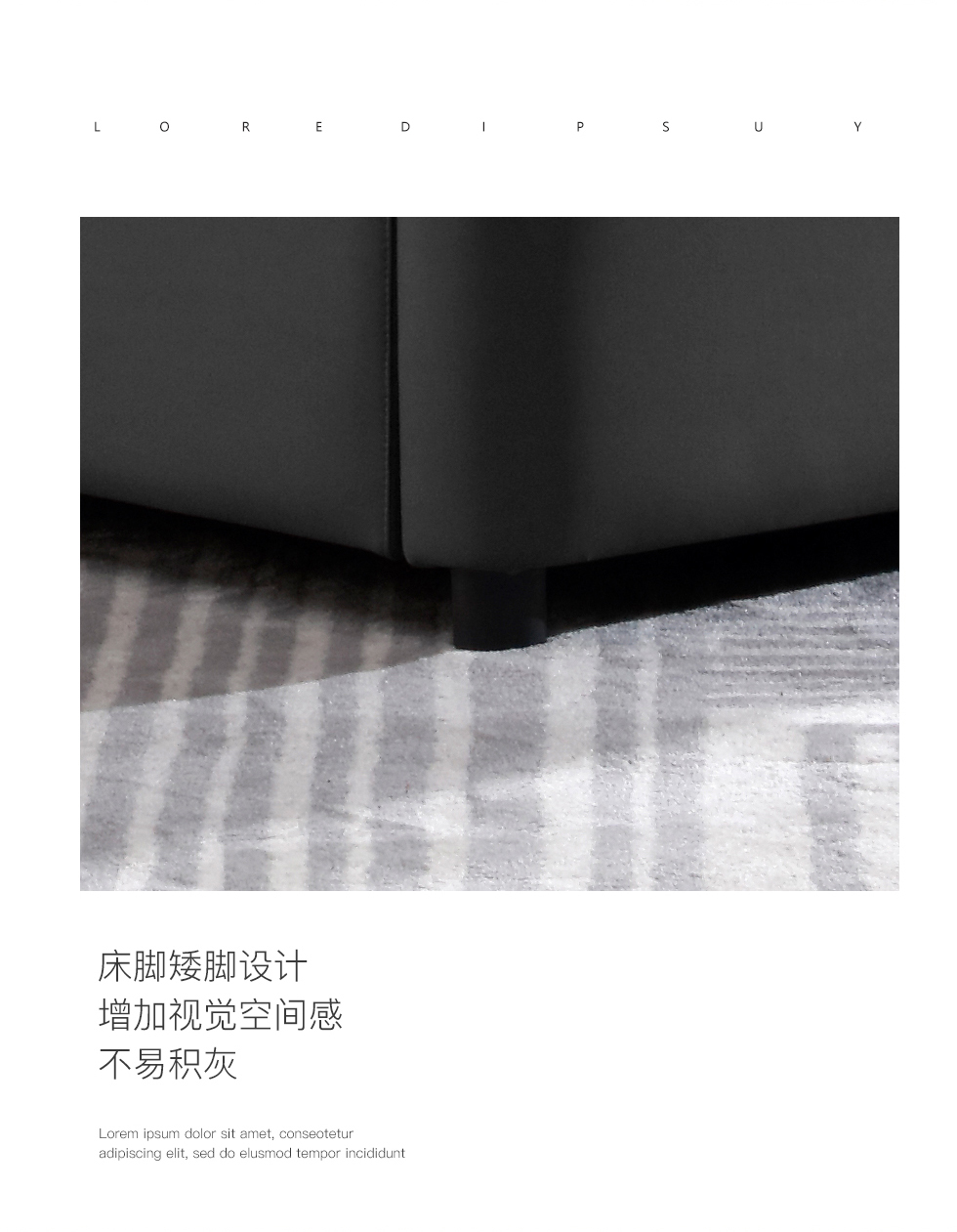 e家优选 极简 科技布 松木 实木多层板 九孔纤维棉 可拆洗 蓝灰色 1.8米布床