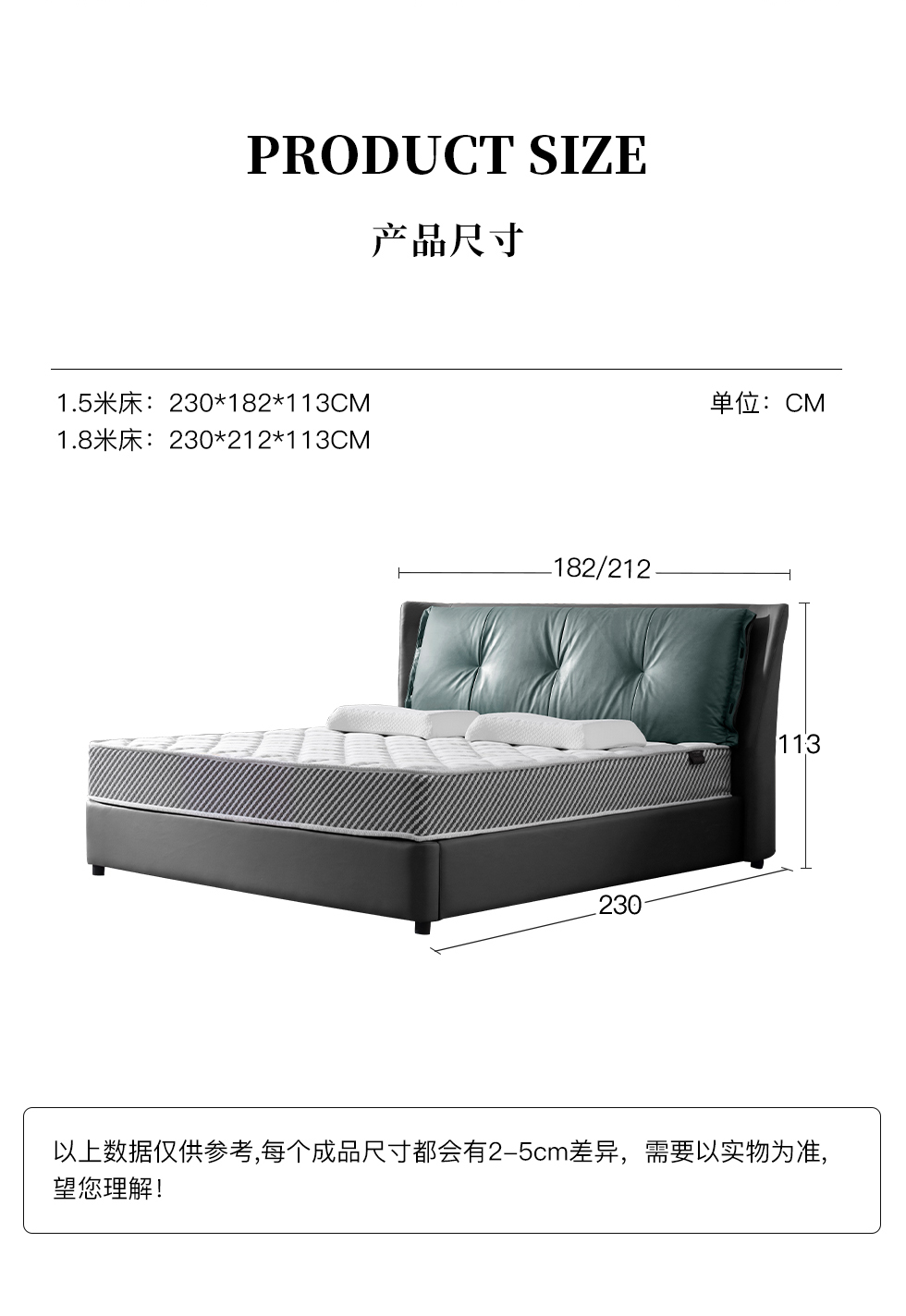 e家优选 极简 接触面头层牛皮 松木 实木多层板 高回弹海绵 银灰 加蓝色 1.8米皮床¥4443