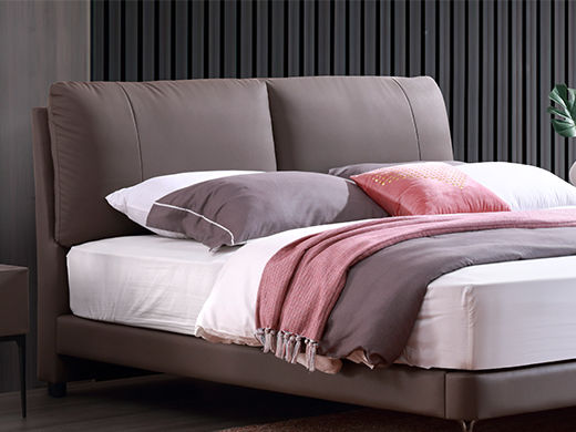 e家优选 极简 科技皮 松木 实木多层板 九孔纤维棉 咖色 1.8米皮床