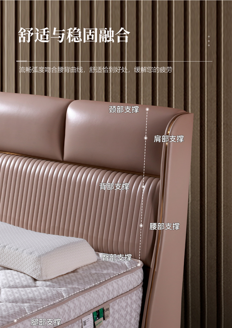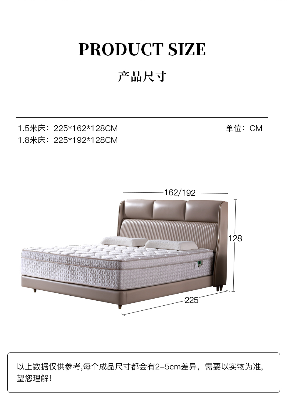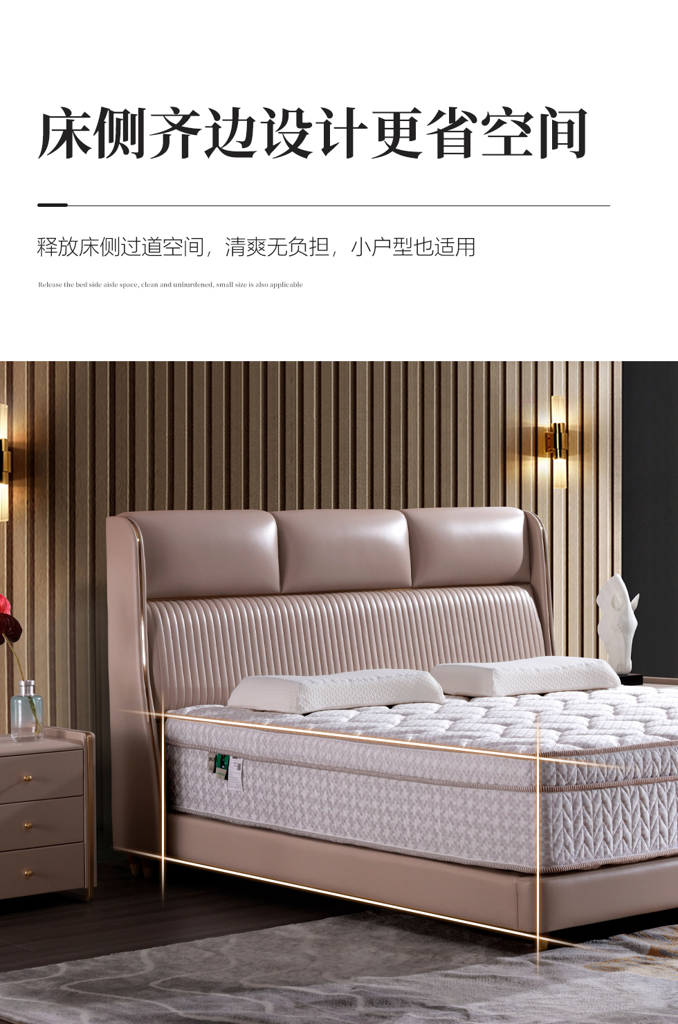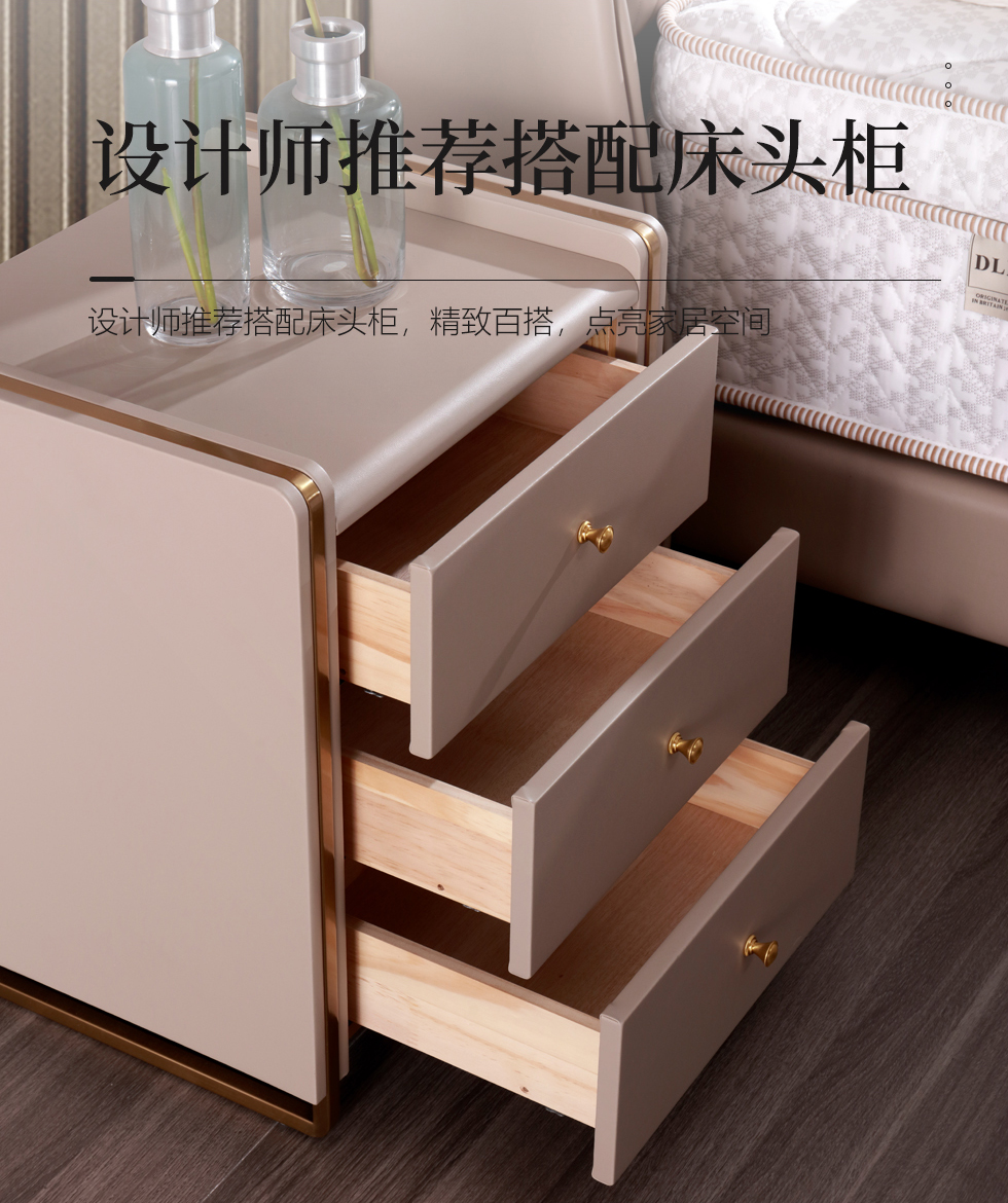 e家优选 极简 接触面靠包真皮 松木 实木多层板 米黄色 1.8米皮床¥4870