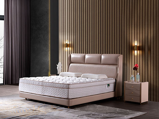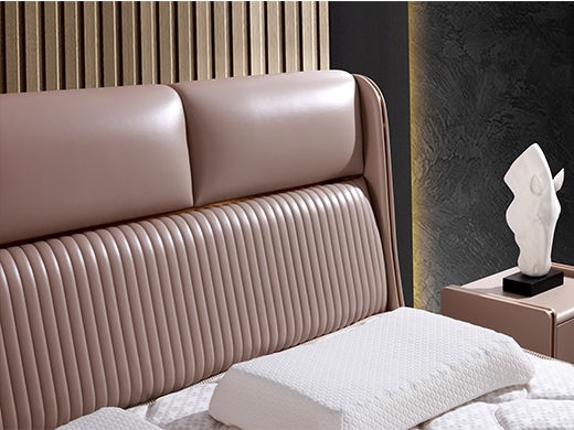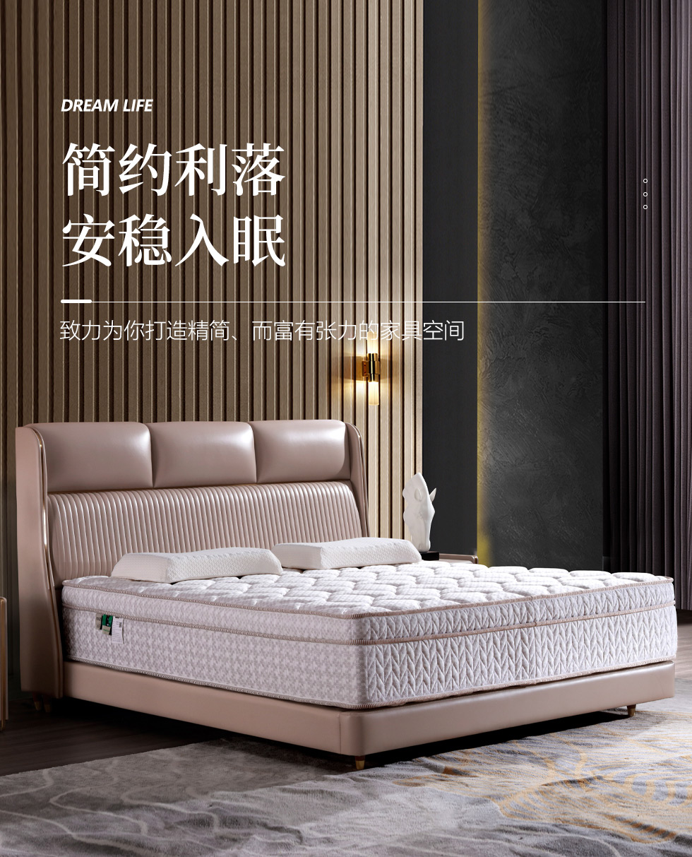 e家优选 极简 接触面头层牛皮 松木 实木多层板 高回弹海绵 杏色 1.8米皮床¥5047
