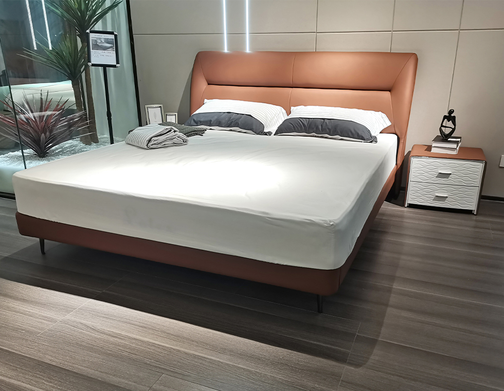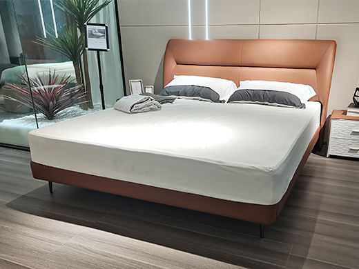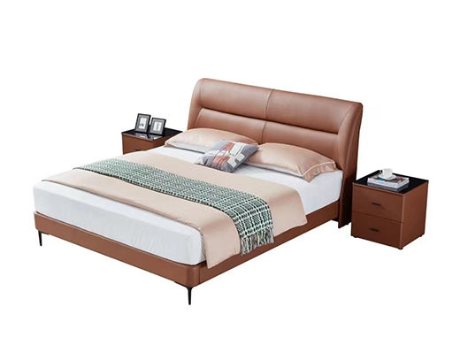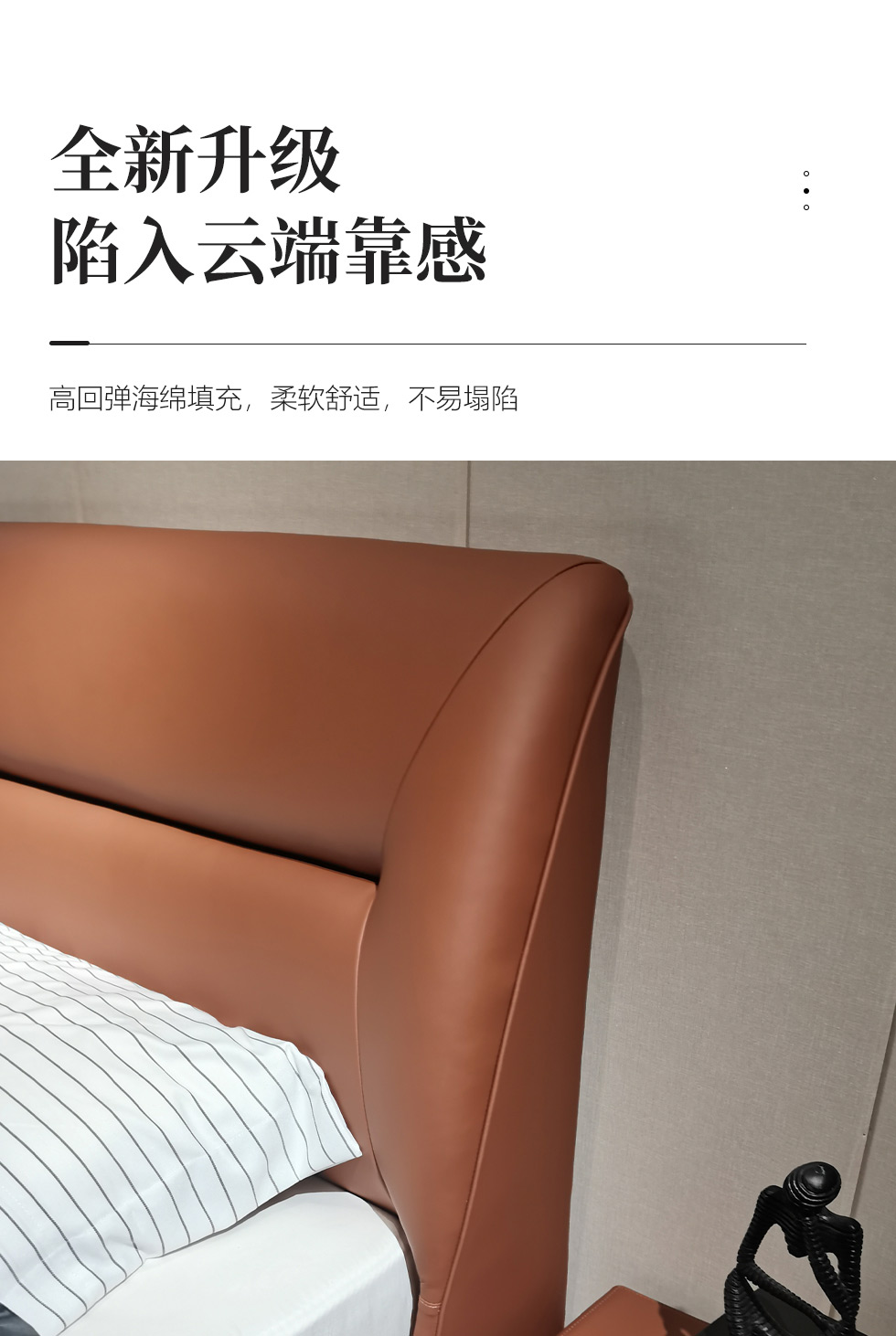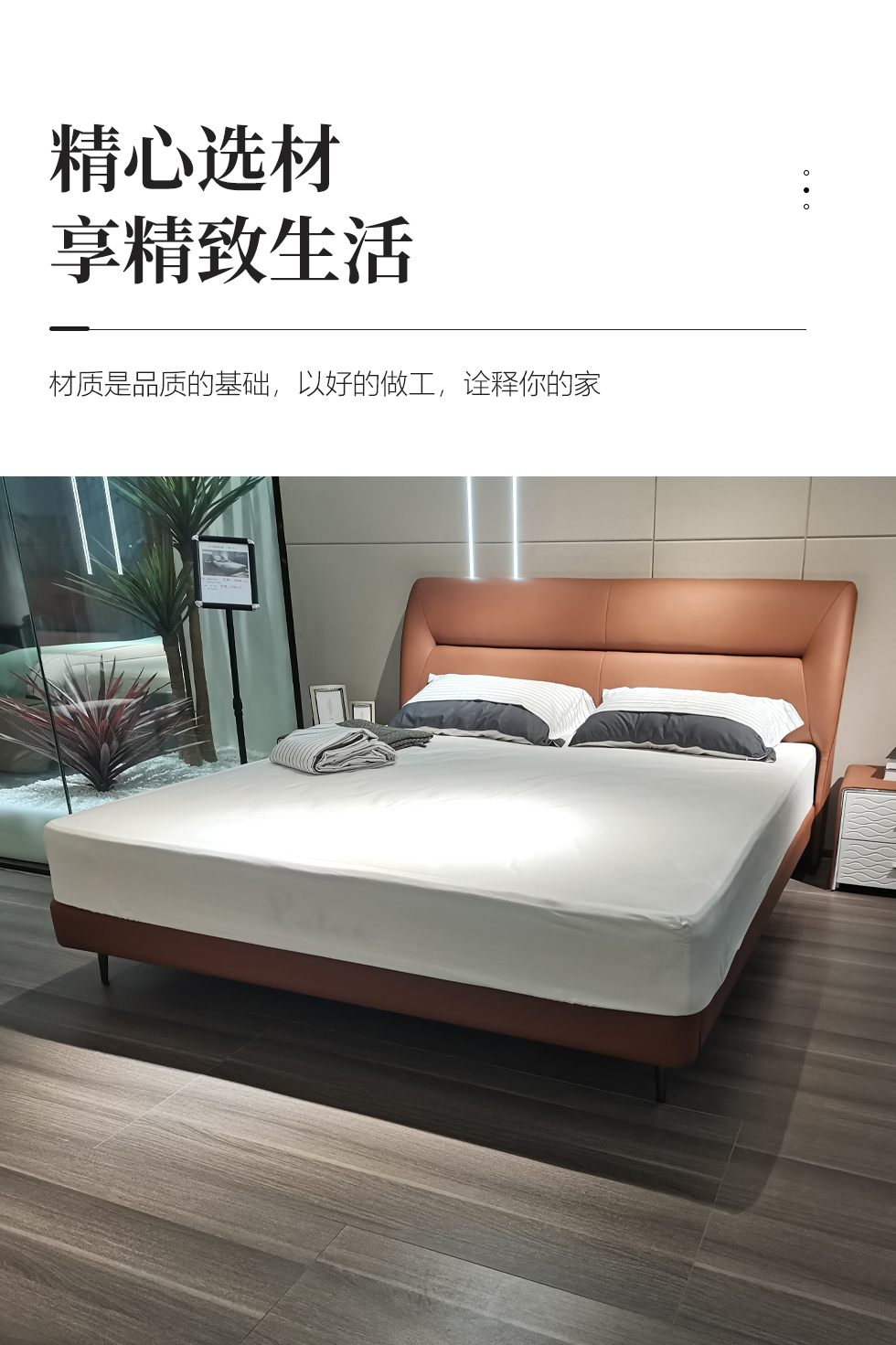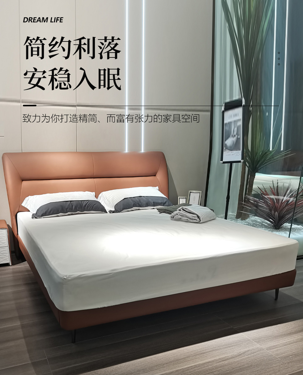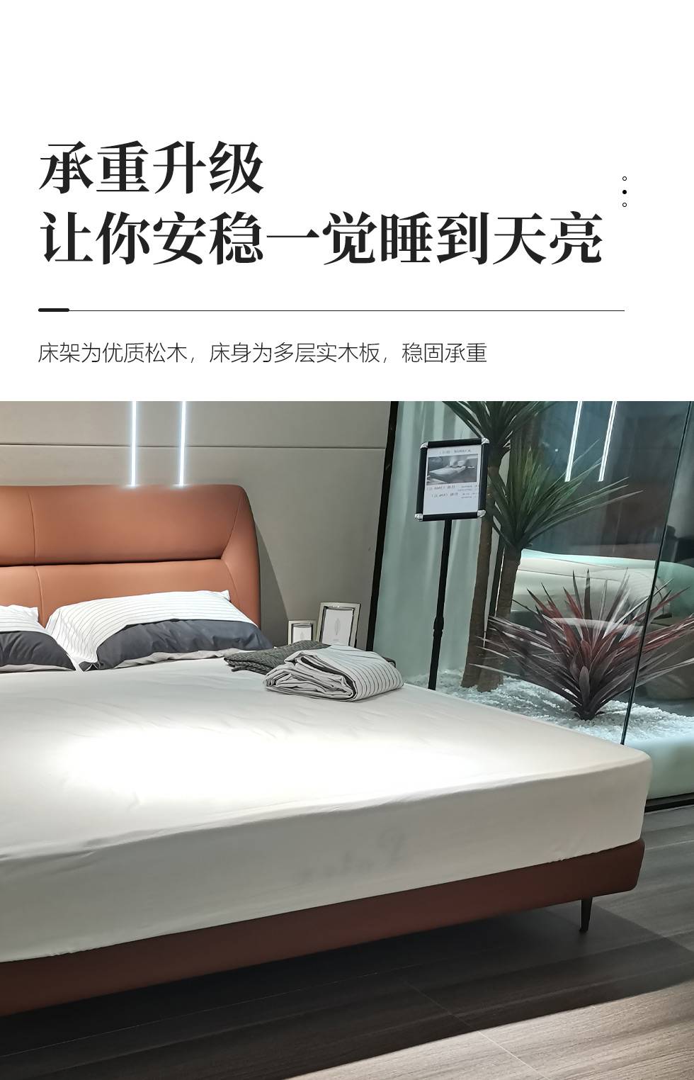 e家优选 极简 接触面头层牛皮 松木 实木多层板 高回弹海绵 杏色 1.8米皮床¥5047
