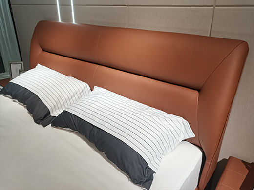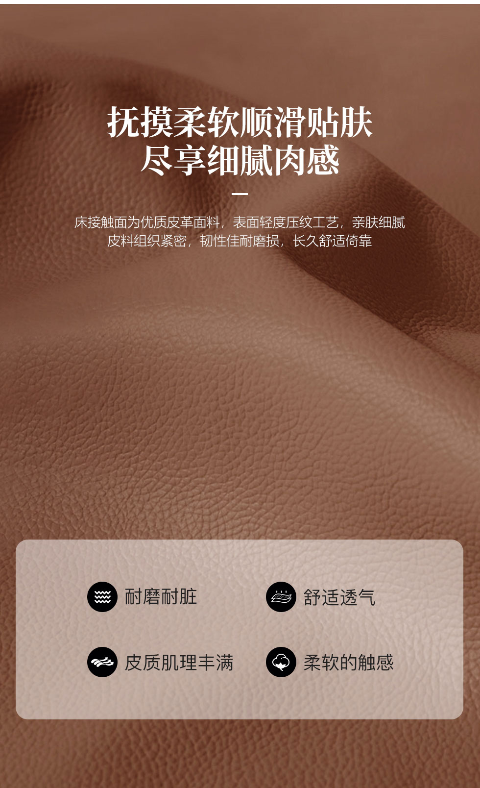e家优选 现代简约 接触面头层牛皮 松木 实木多层板 九孔纤维棉 咖灰色 1.8米皮床¥3875