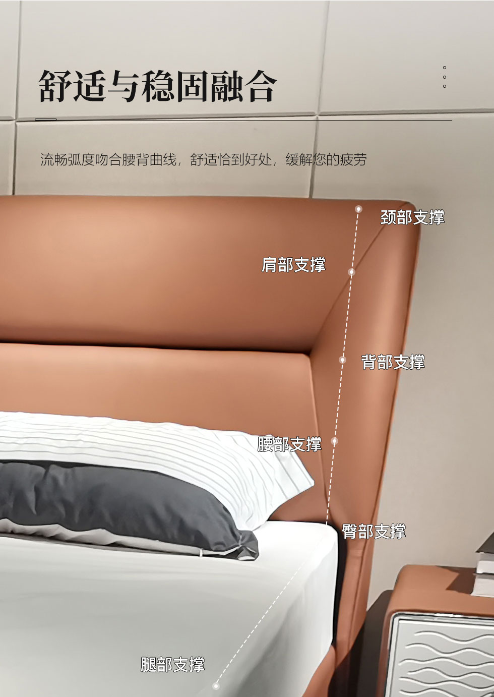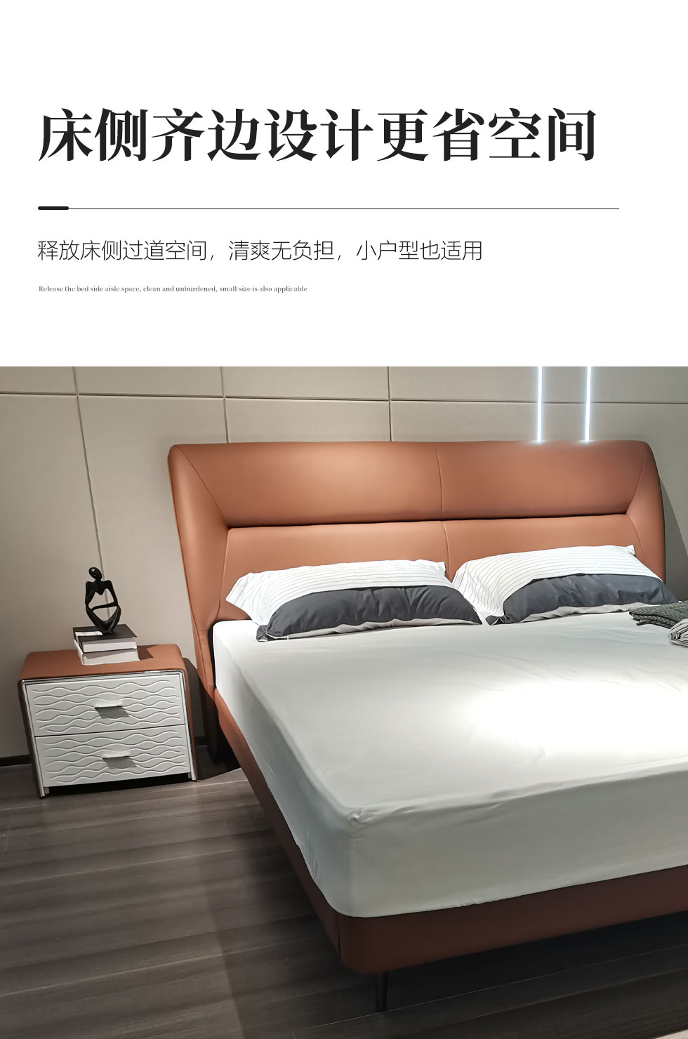 e家优选 极简 接触面靠包真皮 松木 高回弹海绵 排骨架 米色 1.8米皮床¥5324