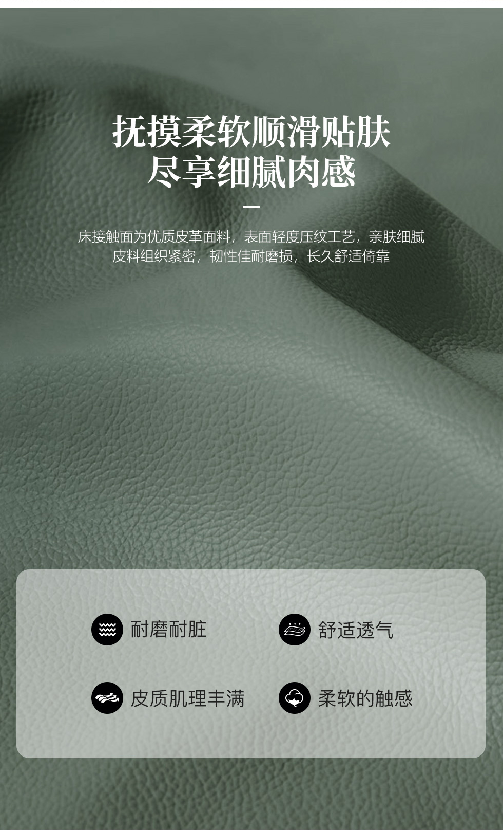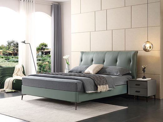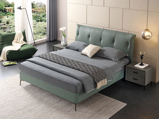 e家优选 极简 接触面靠包真皮 松木 实木多层板 九孔纤维棉 绿色 1.8米皮床¥3849