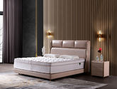 e家优选 极简 接触面靠包真皮 松木 高回弹海绵 排骨架 米色 1.8米皮床¥5324