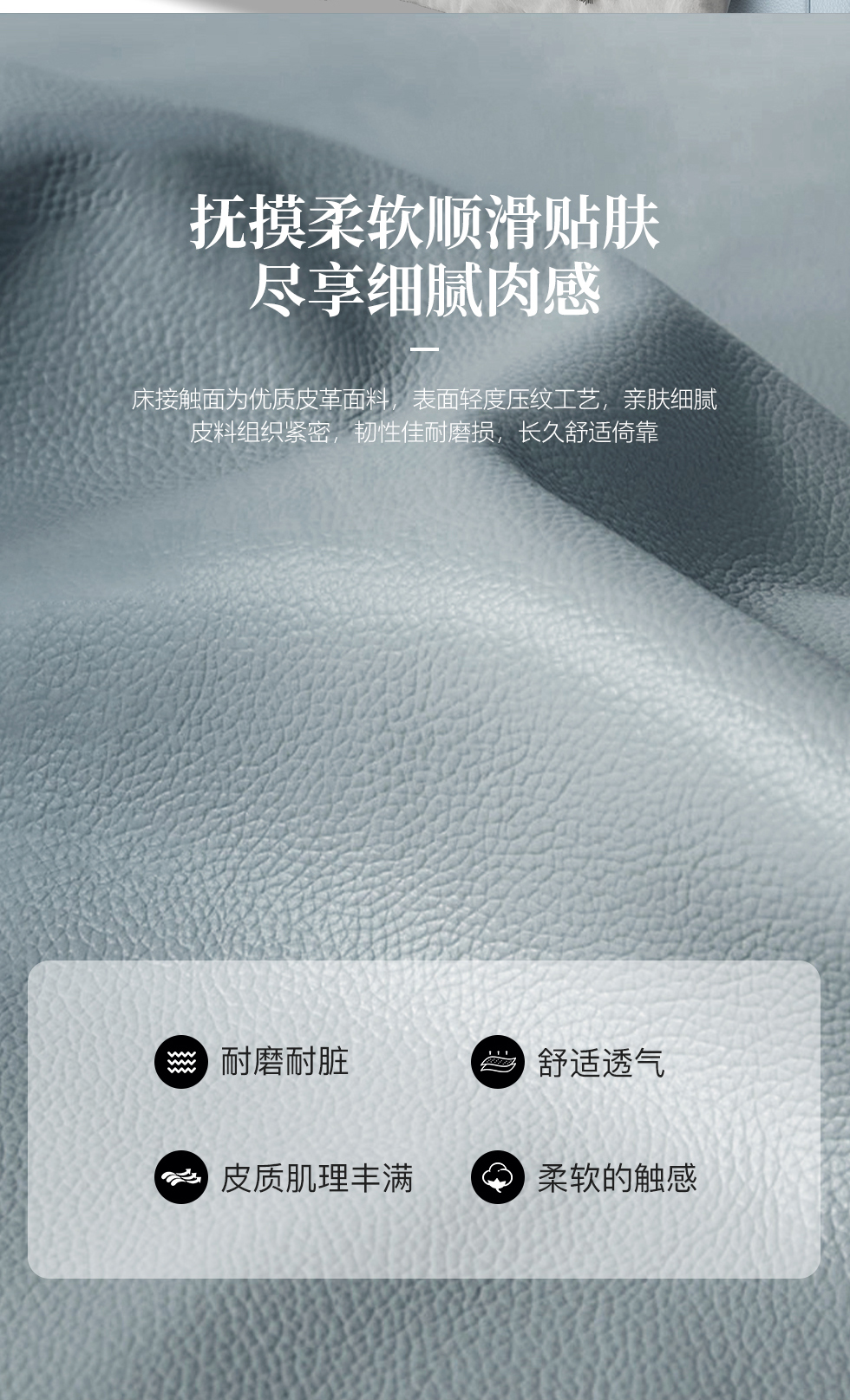 e家优选 极简 接触面靠包真皮 松木 实木多层板 九孔纤维棉 绿色 1.8米皮床¥3849