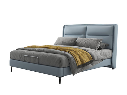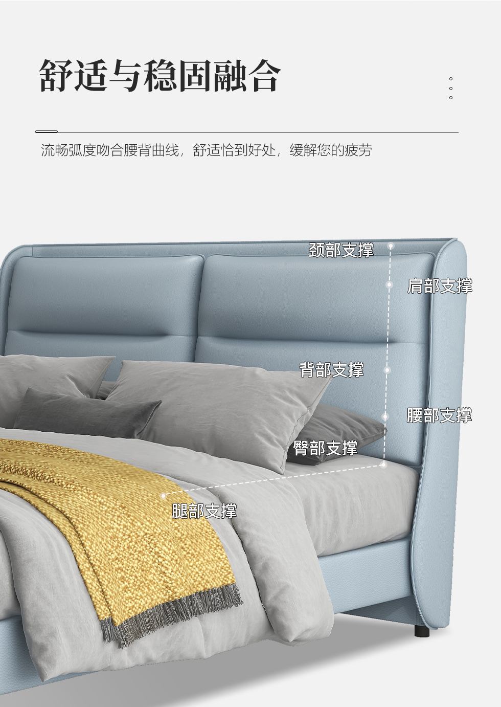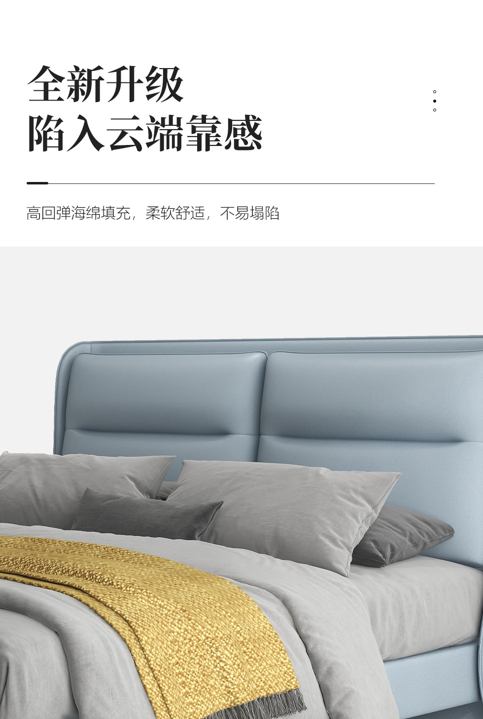 e家优选 轻奢 接触面头层牛皮 松木 实木多层板 高回弹海绵 蓝色 1.8米皮床